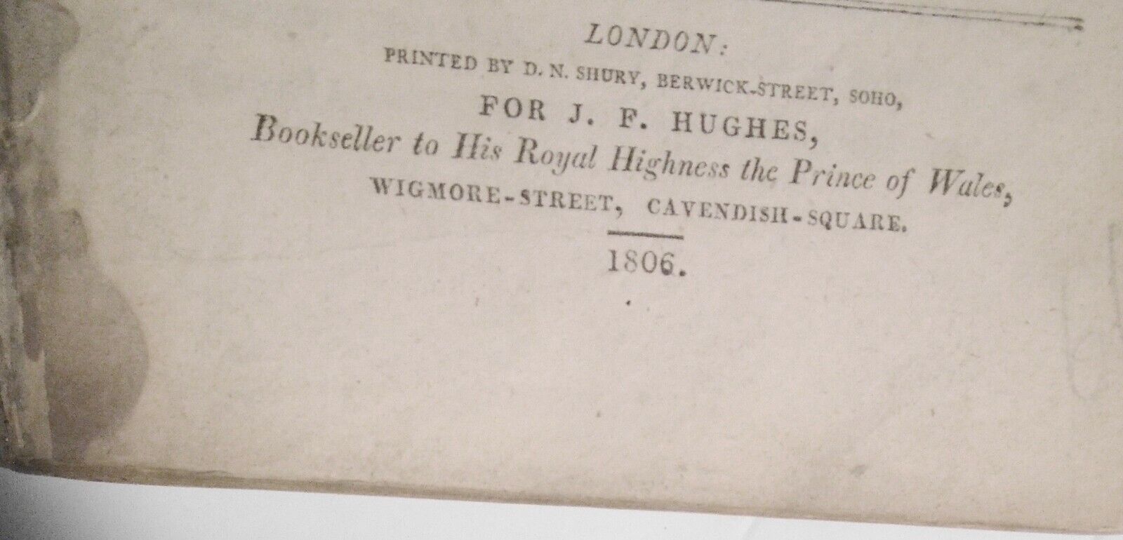 printed by D.N. Shury, Berwick-Street, Soho, for J.F. Hughes, Bookseller to His Royal Highness the Prince of Wales, Wigmore-Street, Cavendish-Square, London, 1806.