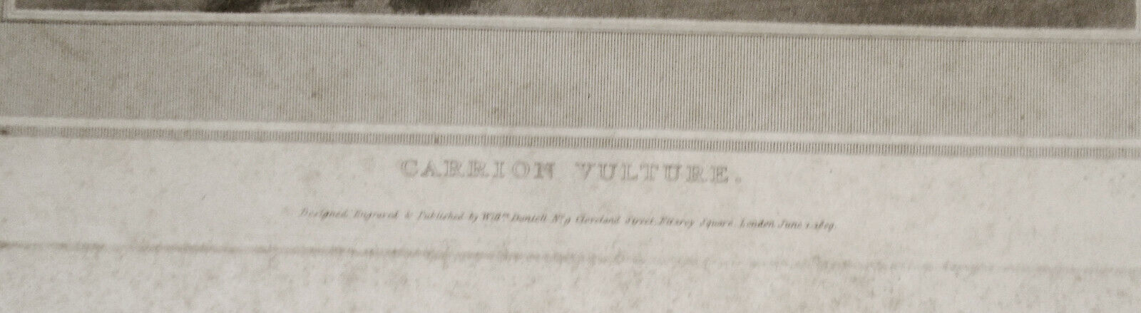Carrion Vulture - original engraving by William Daniell (1769-1837). Published by William Daniell, No.9 Cleveland Street, Fitzroy Square, London, 1807. 7 x 10 inches (plate) unframed