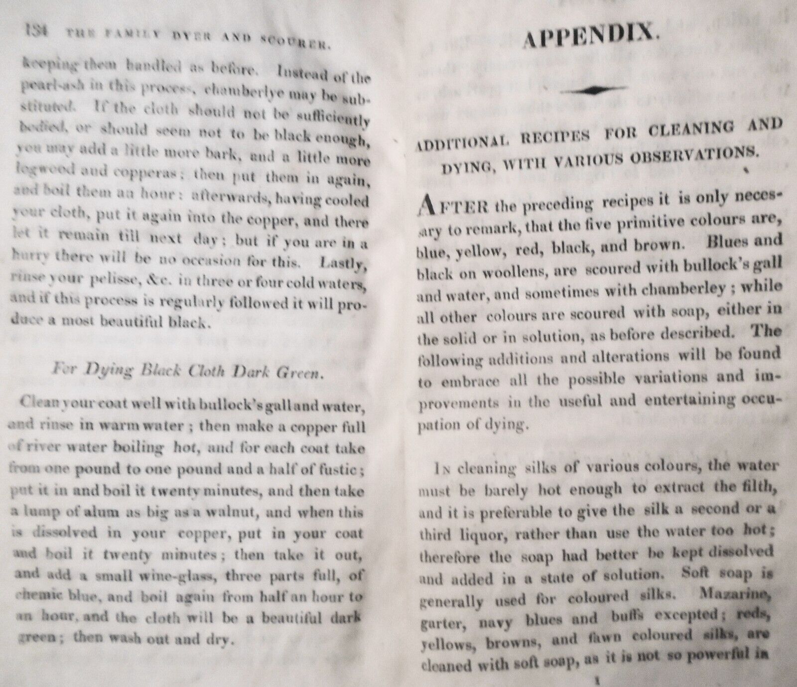 The family dyer and scourer : being a complete treatise on the arts of dying and cleaning every article of dress, bed and window furniture, silks, bonnets, feathers, &c., whether made of flax, silk, cotton, wool, or hair : also, carpets, counterpanes, and hearth-rugs, ensuring a saving of eighty per cent.