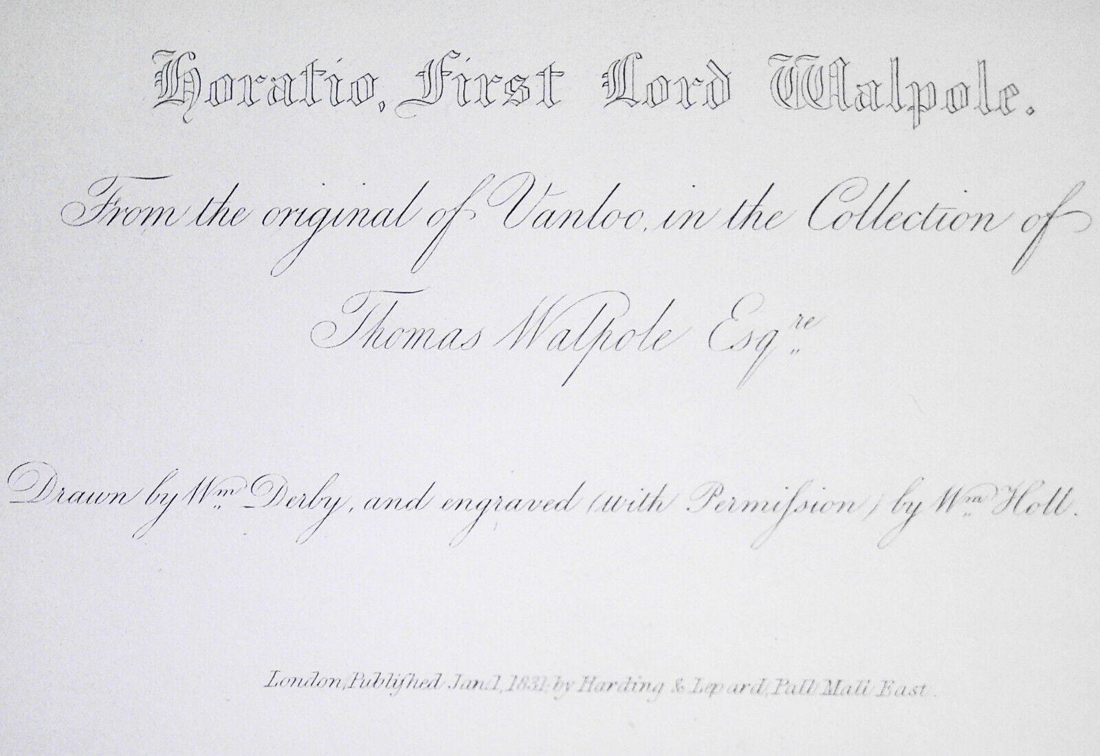 1831 Horatio Walpole - original engraving from Lodge's Portraits. 17x11 inches.