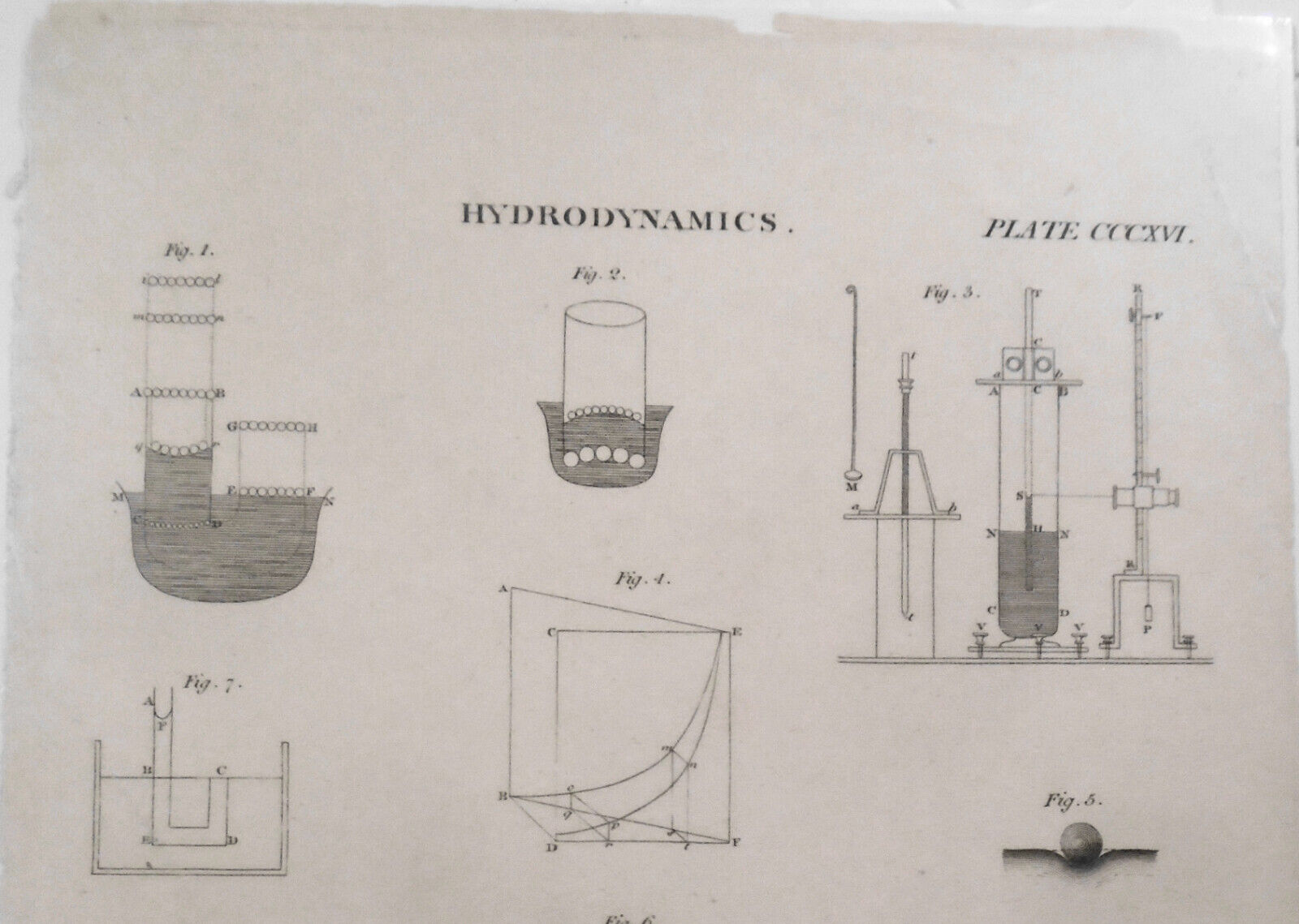 1832 HYDRODYNAMICS, Plate CCCXVI - original antique print. Matted.