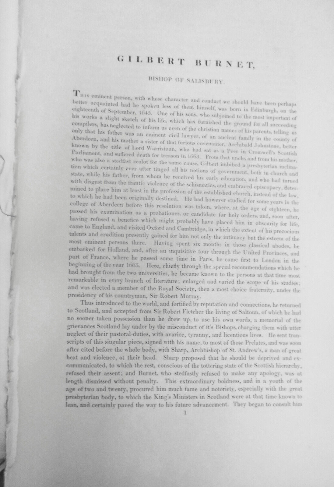 1834 Gilbert Burnet, Bishop of Salisbury - original engraving from: