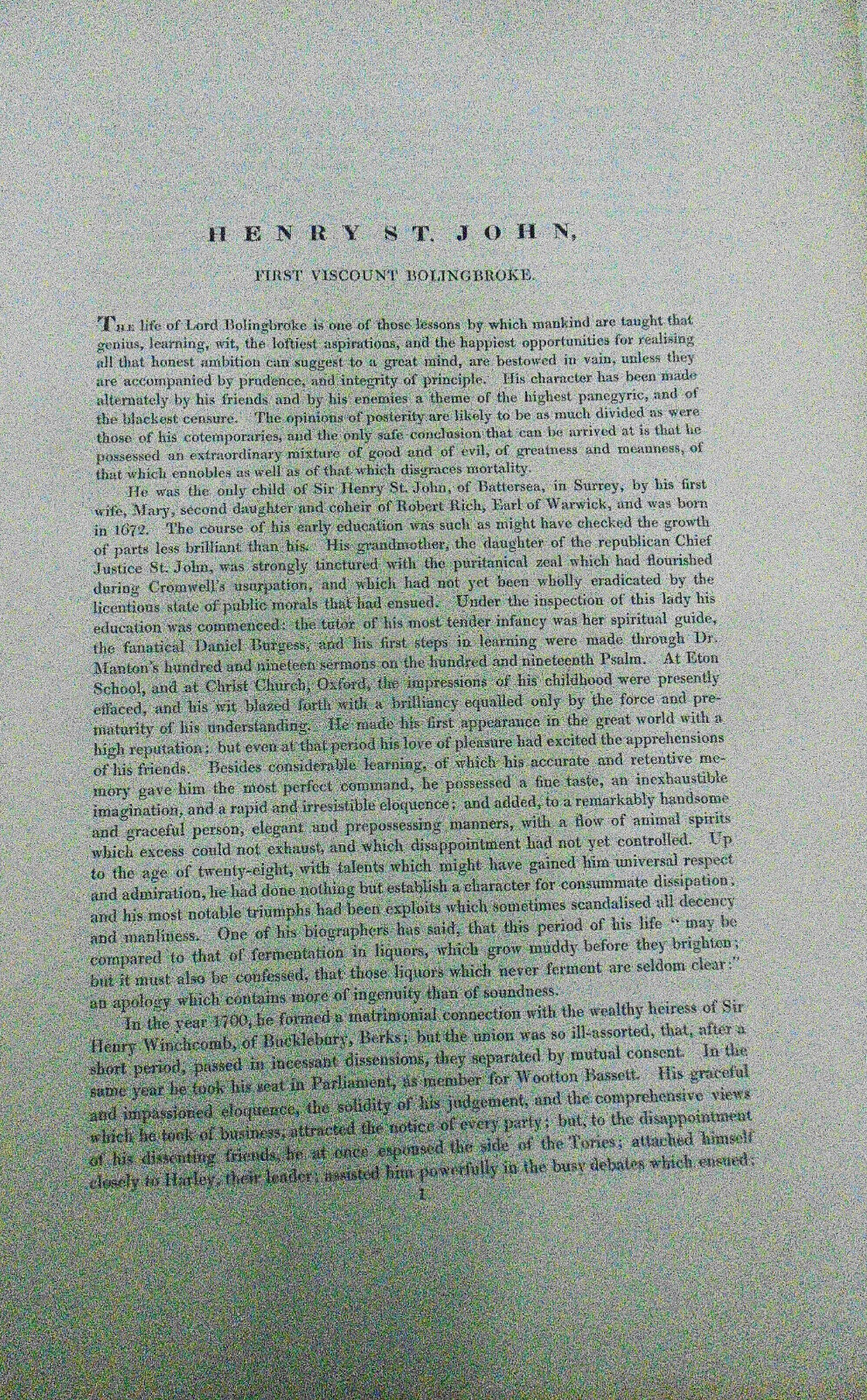 1834 Henry St. John , First Viscount Bollingbroke - original engraving from:
