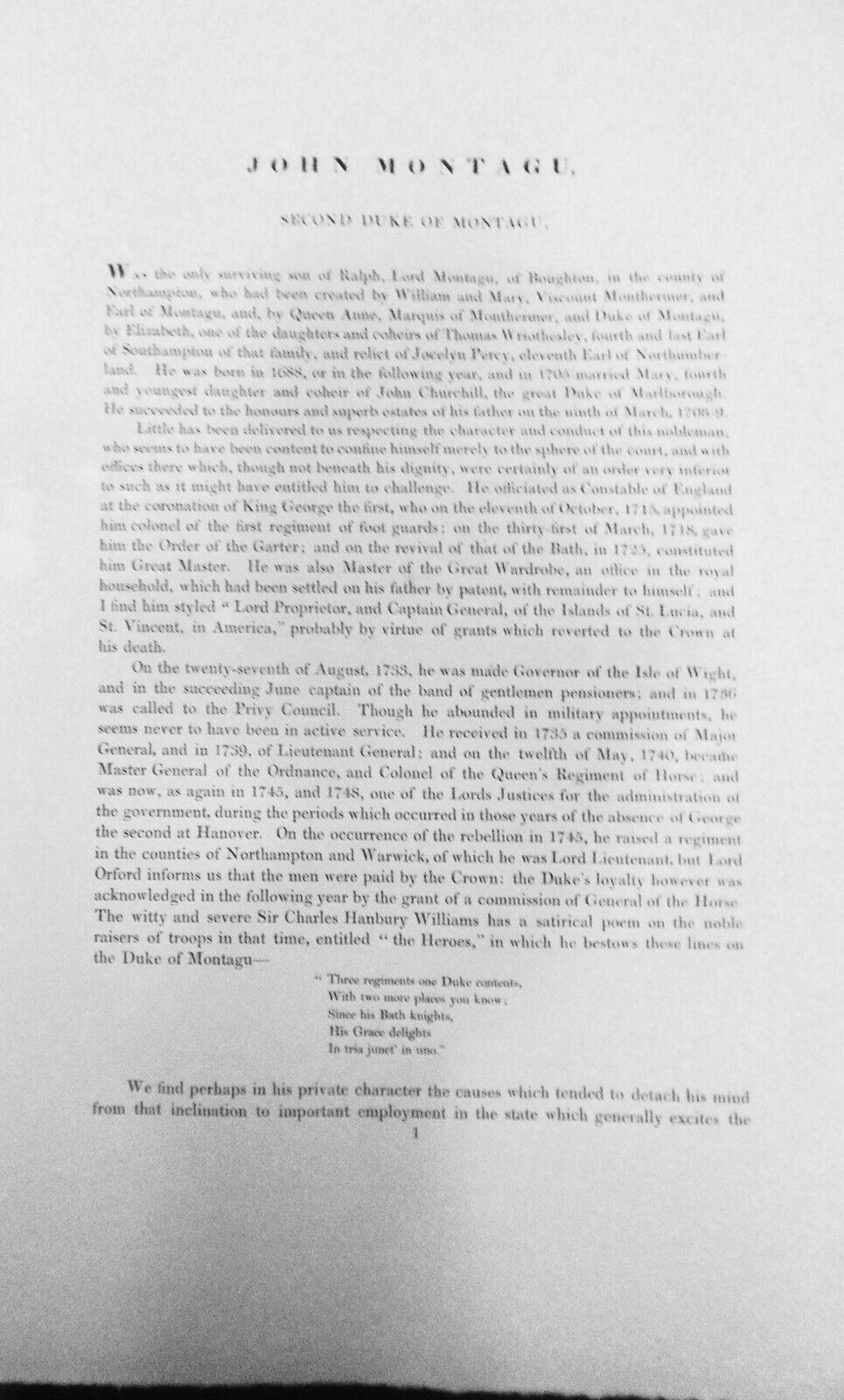 1834 John Montagu, Second Duke of Montagu - original engraving from: