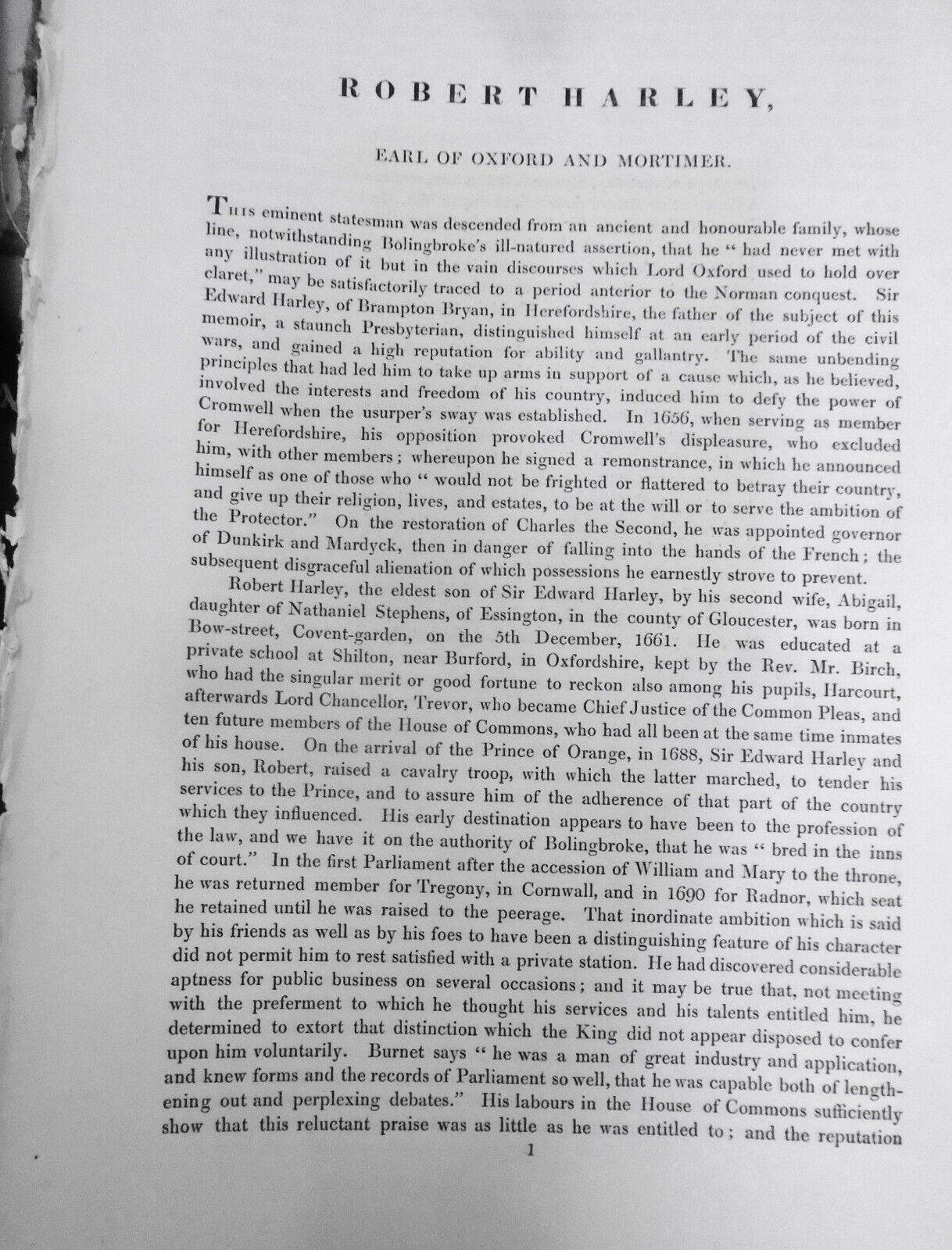 1834 Robert Harley, Earl of Oxford and Mortimer - original engraving from: