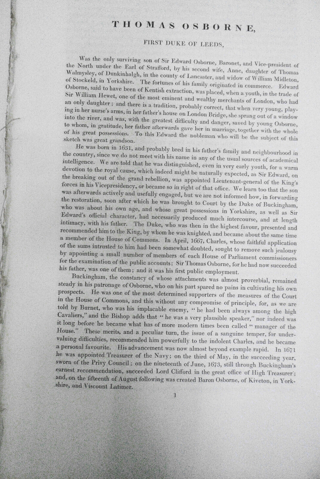 1834 Thomas Osborne, First Duke of Leeds - original engraving from: