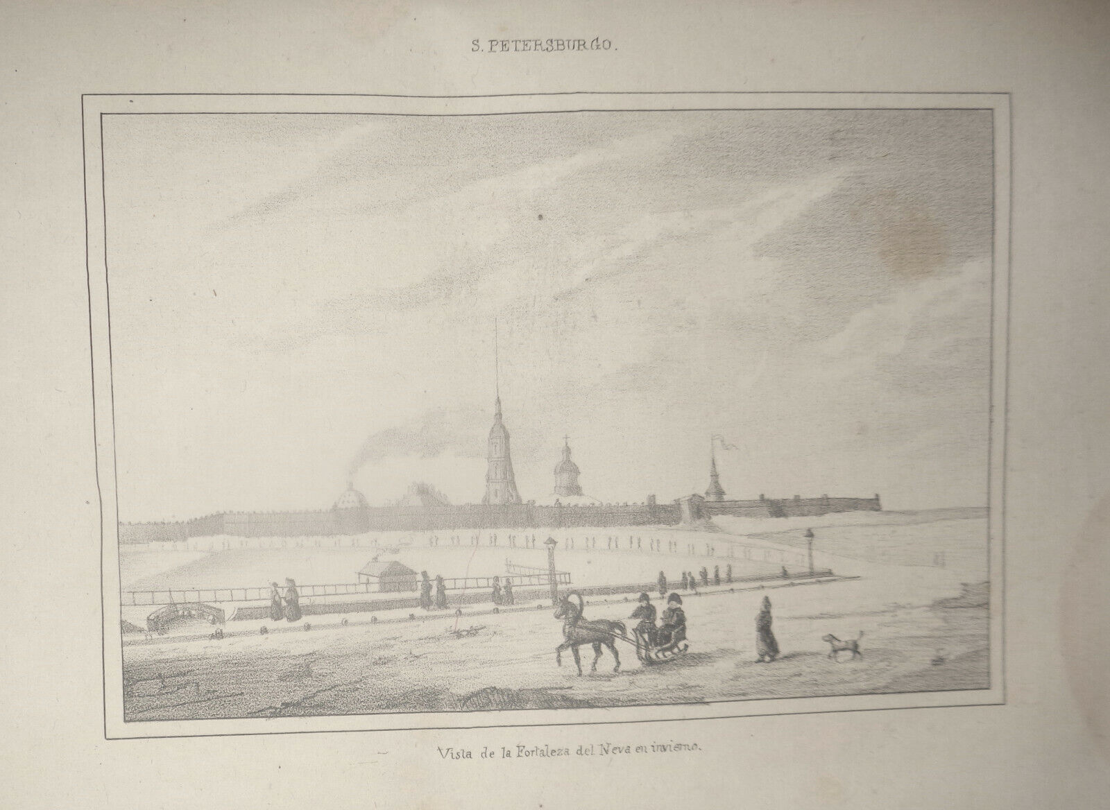 1840 S. Petersburg: Vista de la Fortaleza del Neva en invierno - engraving