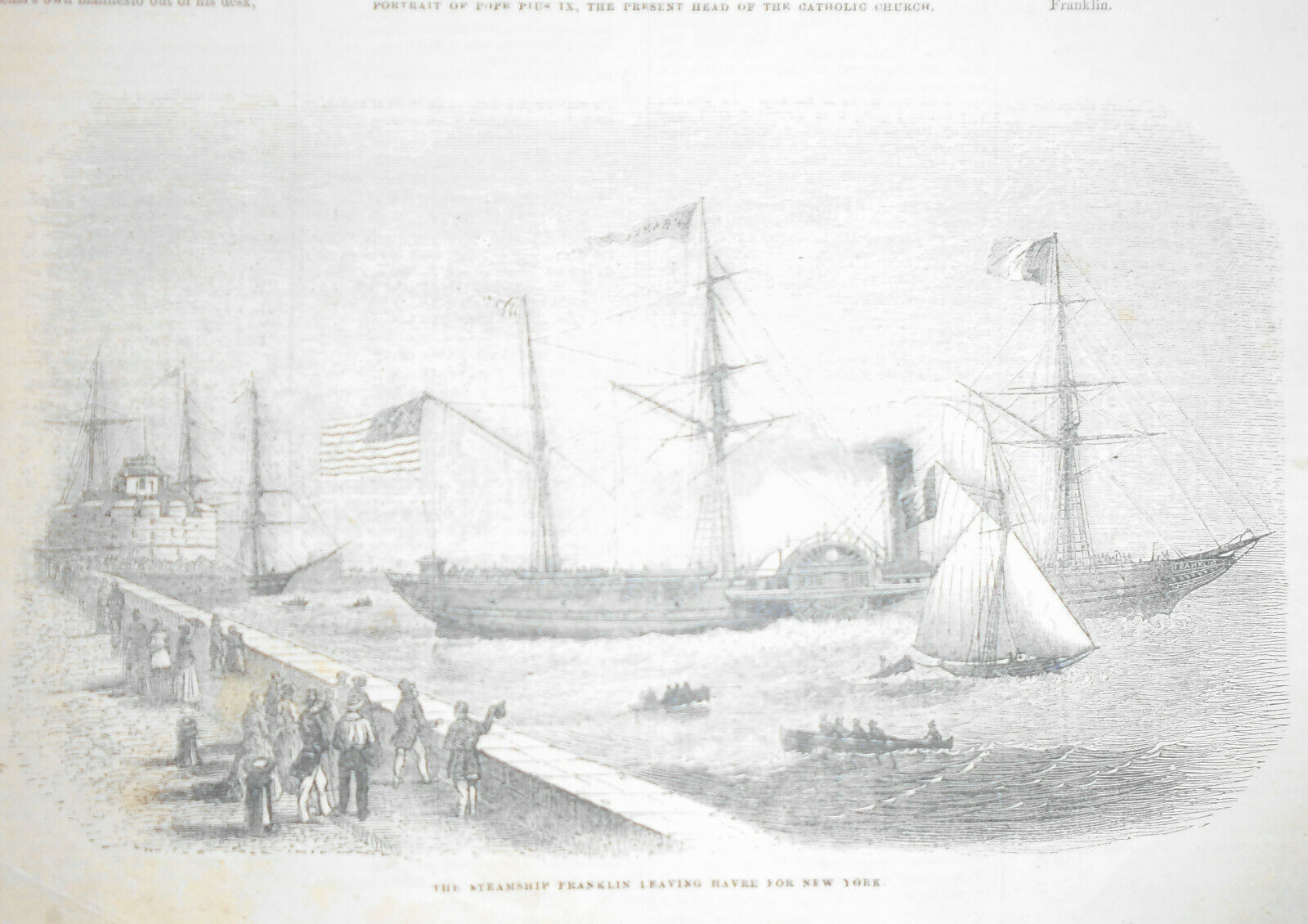 1852 Pope Pius IX & Steamship Franklin leaving Hayre -- 2 prints - Gleason's
