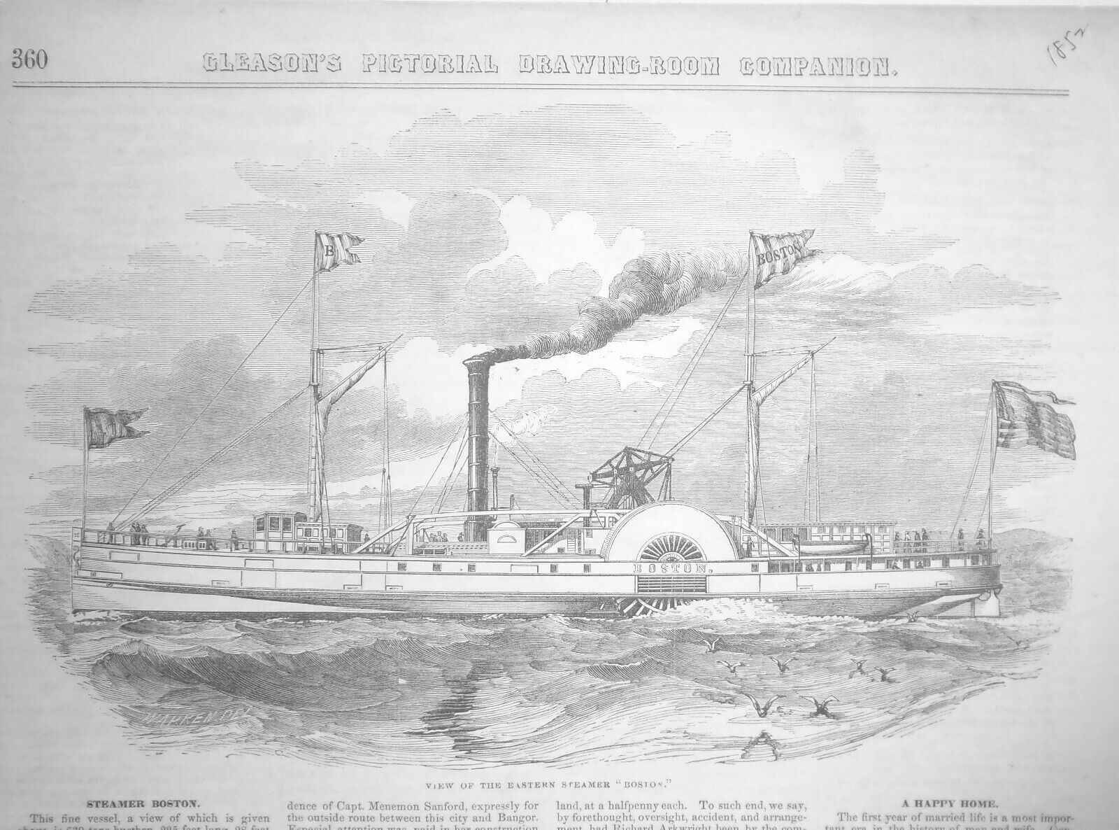 1852 The Eastern Steamer "Boston" - Story & print + Silver Plate - Gleason's