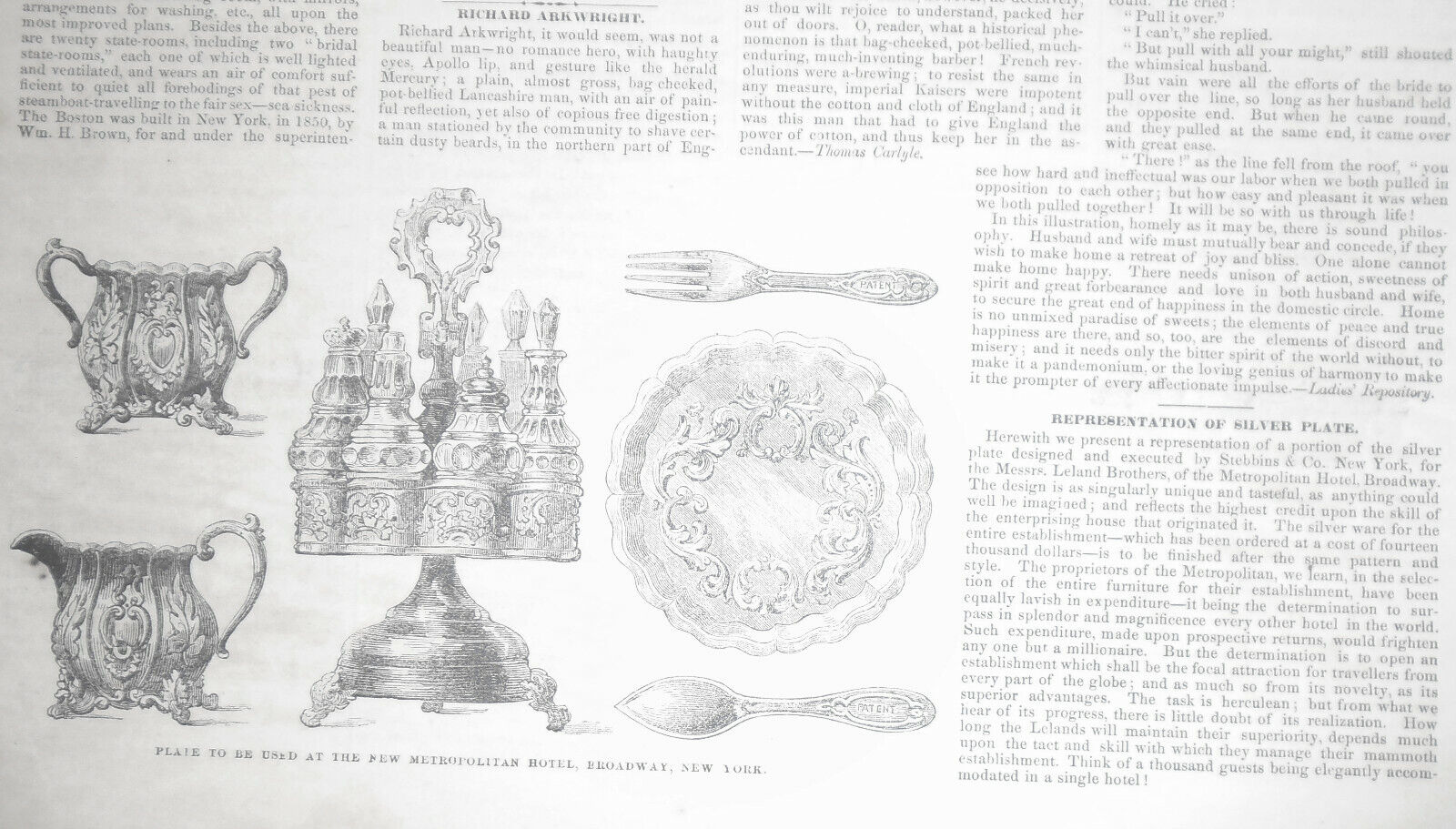 1852 Gleason's Pictorial Drawing-room Companion - Original, Page With Story, & 2 Prints on The Eastern Steamer "Boston" + Silver Plate