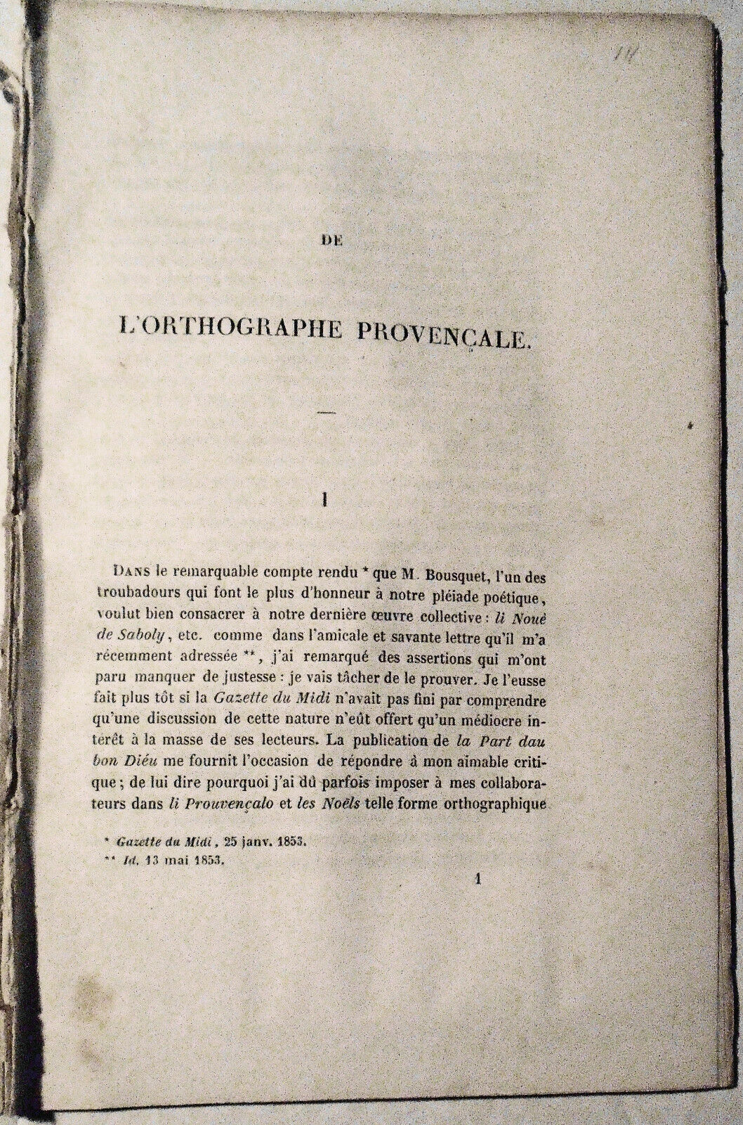 1853 Roumanille: La part dau bon Dieu: precede d'une dissertation l'orthographie