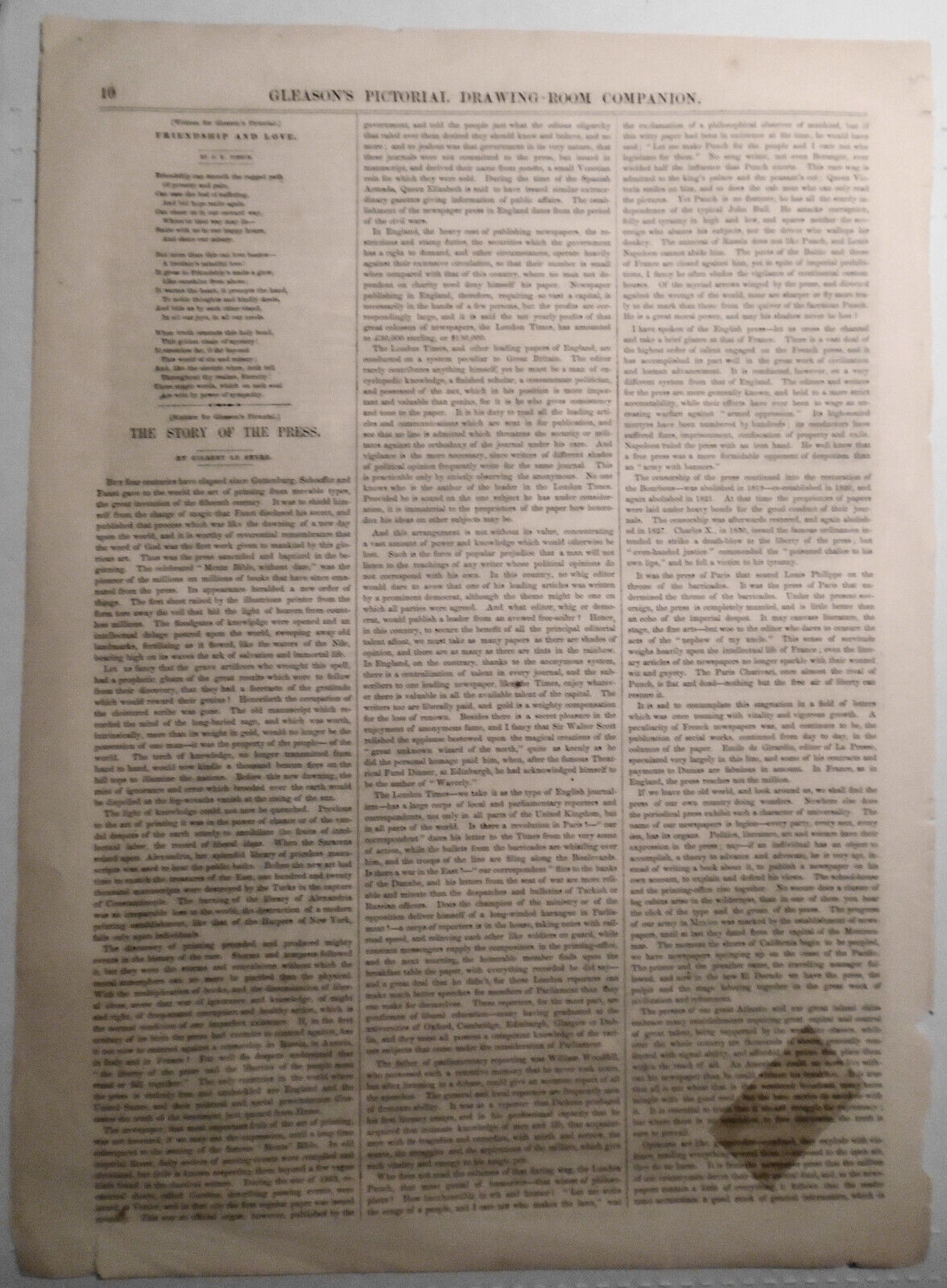 Gleason's Pictorial Drawing-room Companion - Original, Story & 2 Prints - "Lake George From Top of Fort George Caldwell Village ..." & "Bedford Township..." - 1850's