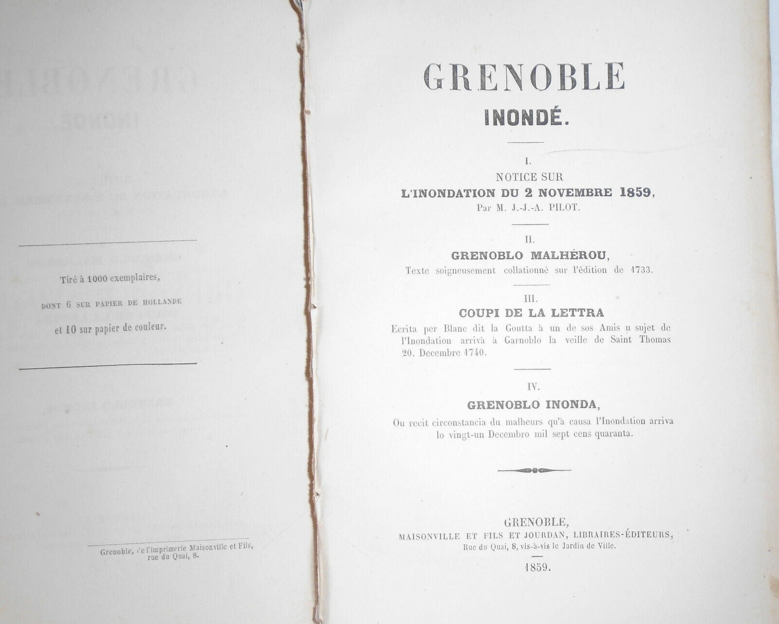 1859 Grenoble inonde. I. Notice sur l'inondation... II. Grenoblo malherou... etc