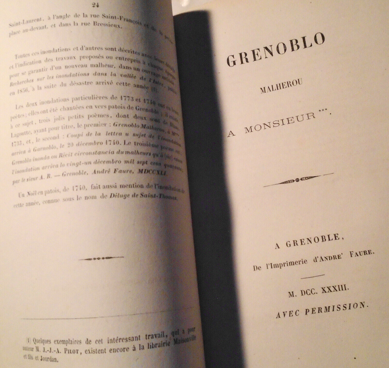 1740. IV. Grenoblo inonda, ou recit circonstancia du malheurs qu'a causa