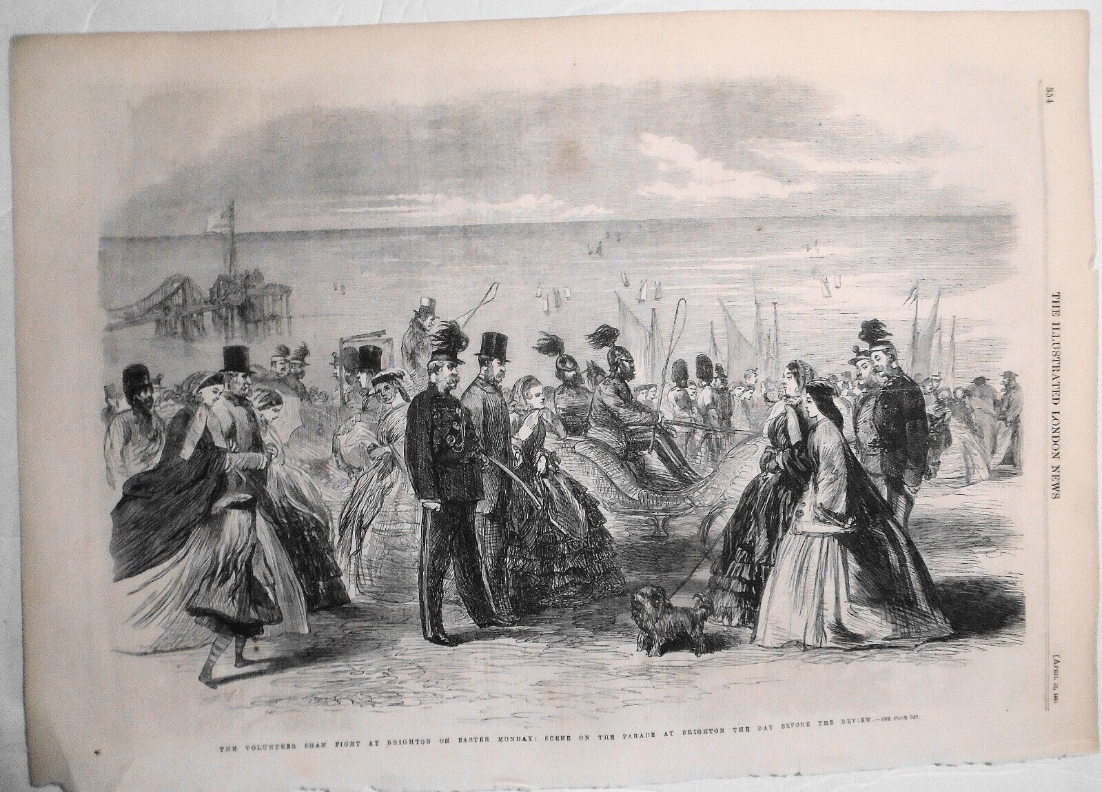 THE ILLUSTRATED LONDON NEWS - ORIGINAL, FULL PAGE PRINT - "The Volunteer Sham Fight at Brighton on Easter Monday: Scene on the Parade at Brighton the Day Before the Review"