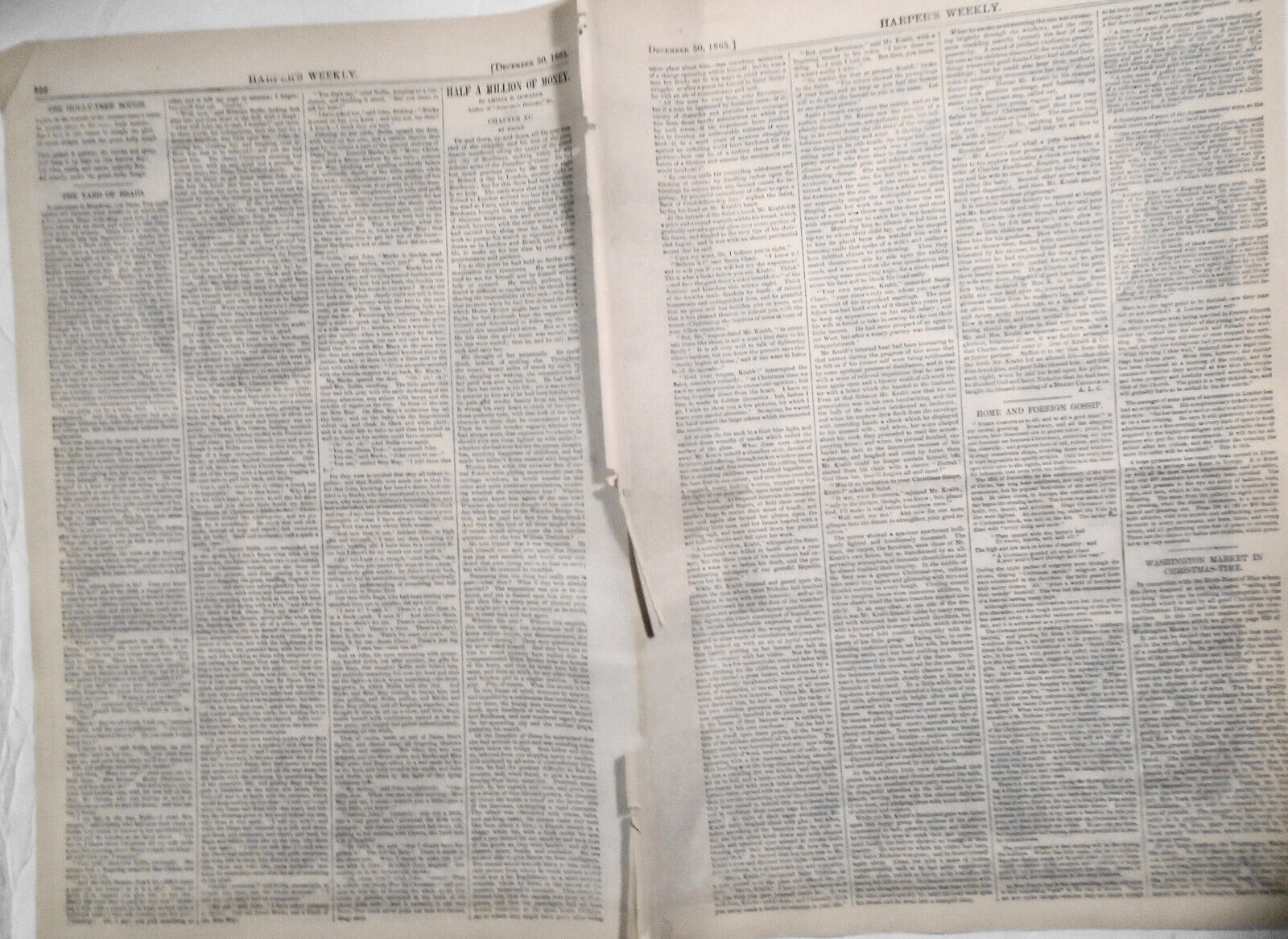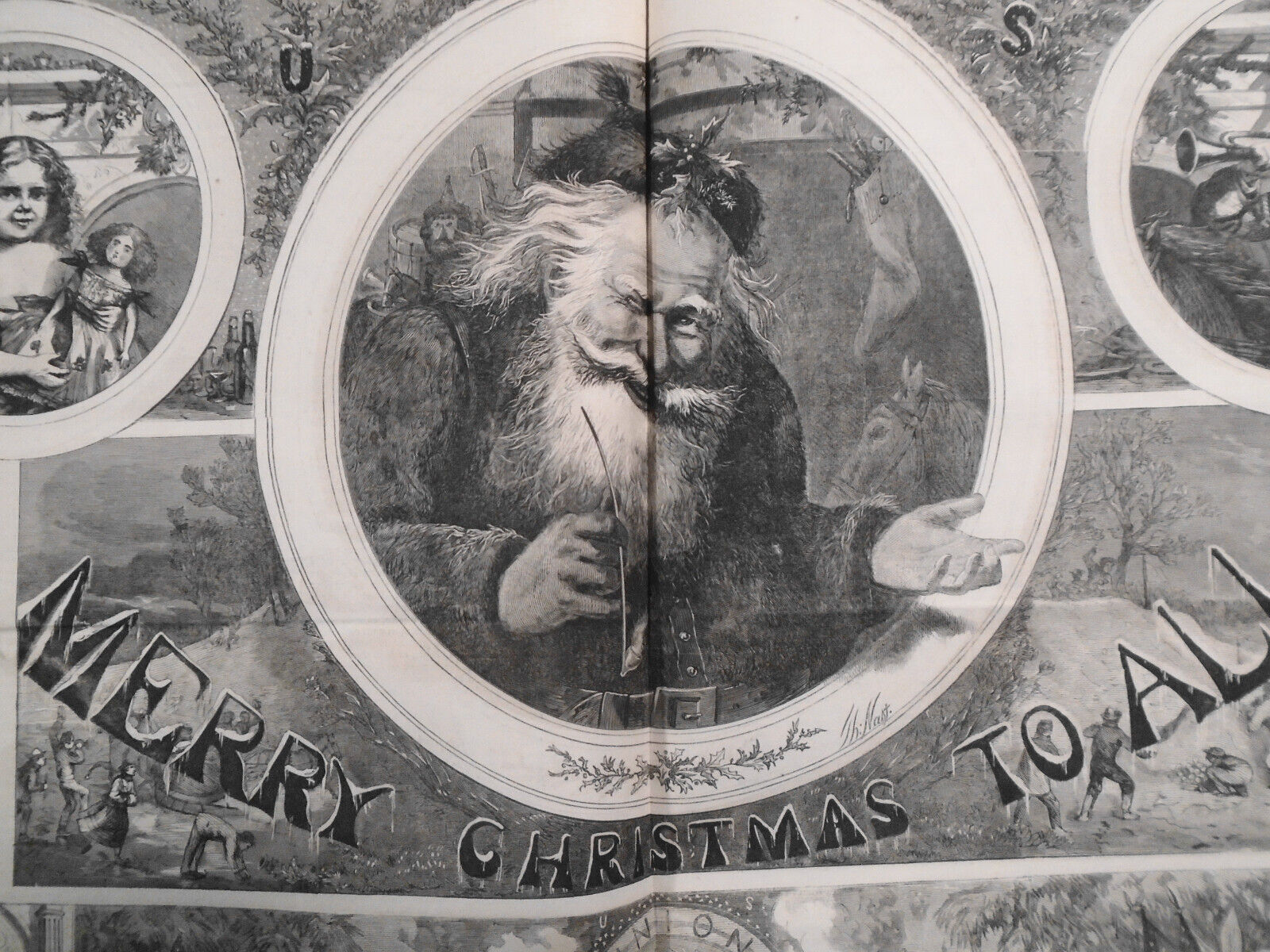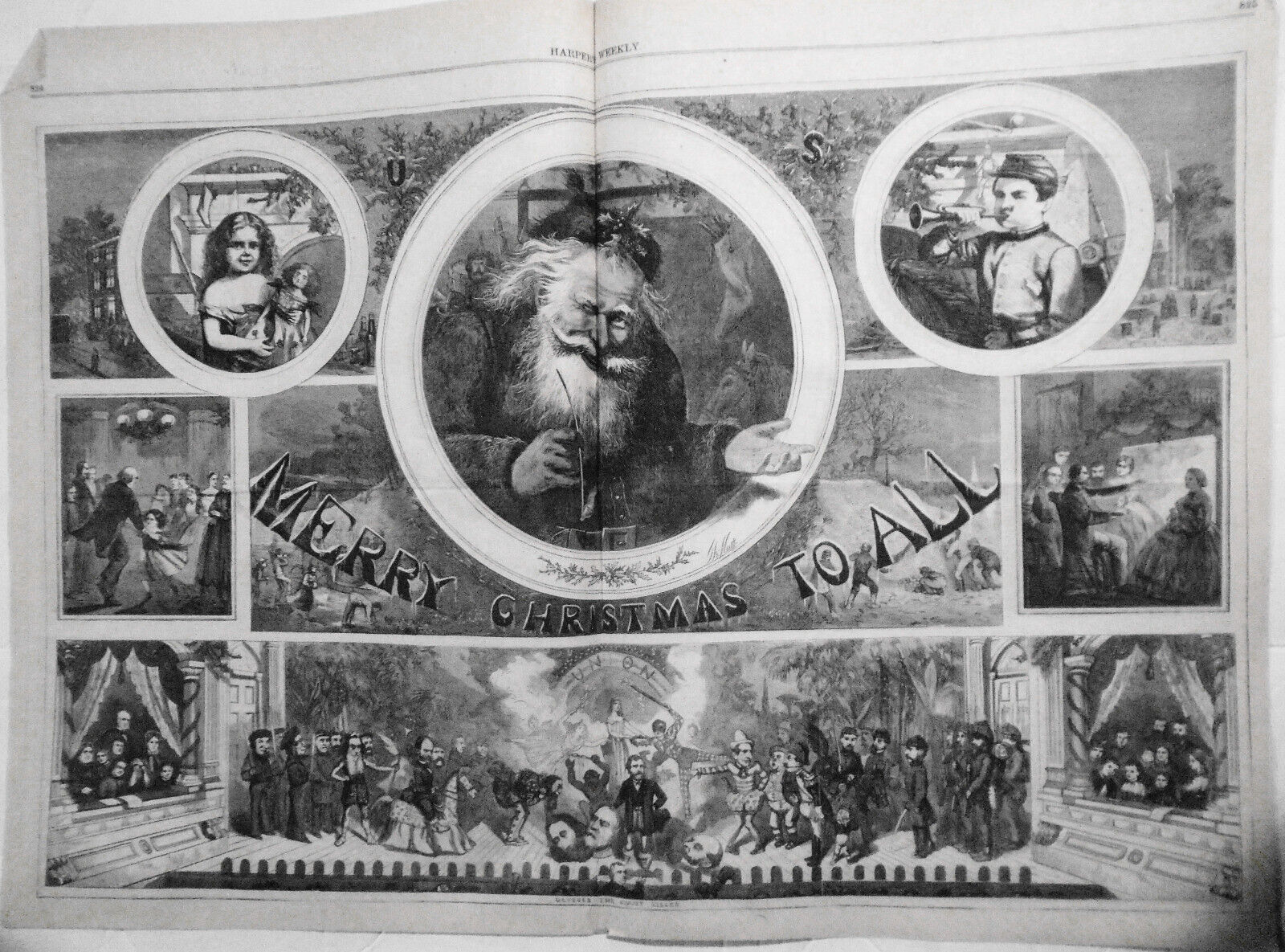 1865 Civil War Harper's Weekly "Merry Christmas To All" - Nast Double page print
