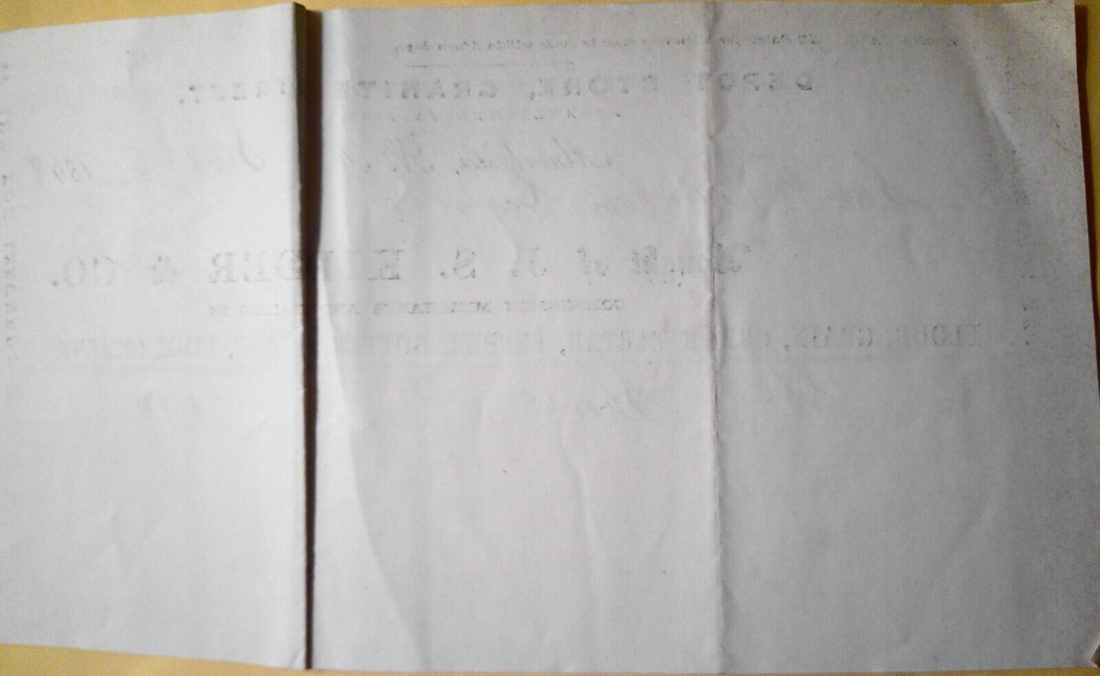 1868 Depot Store, Granite Street, Manchester, NH. Bought of J. S. Kidder receipt