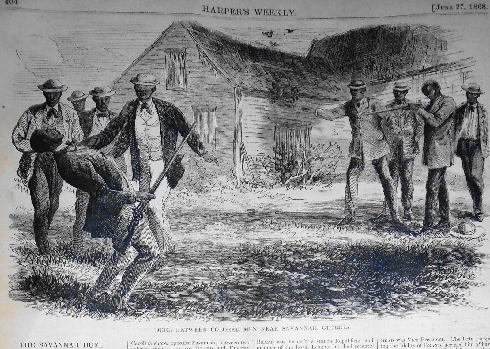 1868 Harper's Weekly: Duel Between Colored Men Near Savannah etc Original Issue