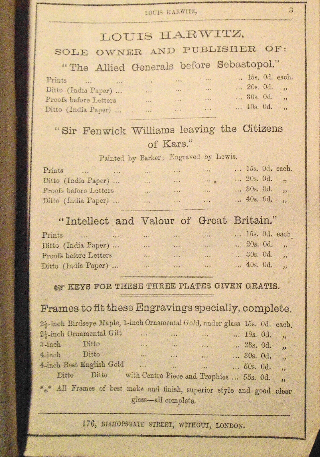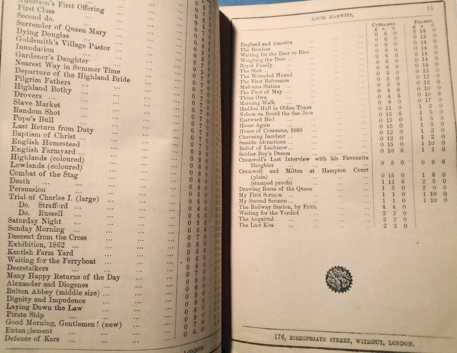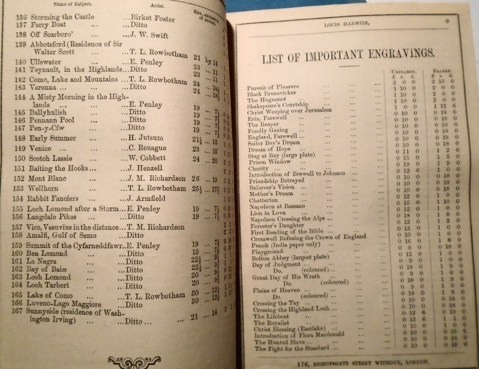 1870 Louis Harwitz, Publisher of Engravings & Lithographs - 2 Catalogs & Prices