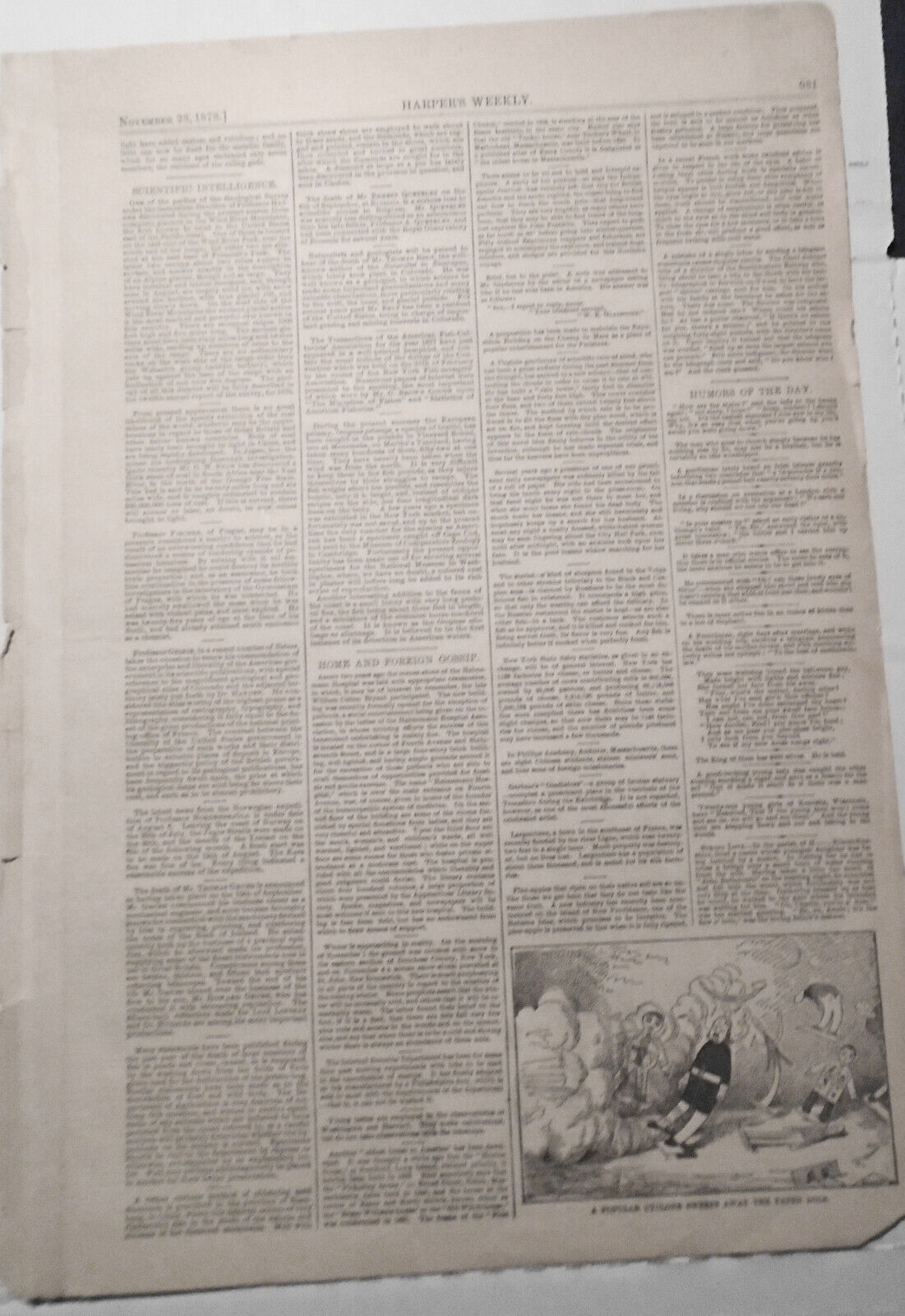 HARPER'S WEEKLY - ORIGINAL, 3 PAGES WITH STORY & PRINT - "THE PARIS EXHIBITION..." - NOVEMBER 23, 1878