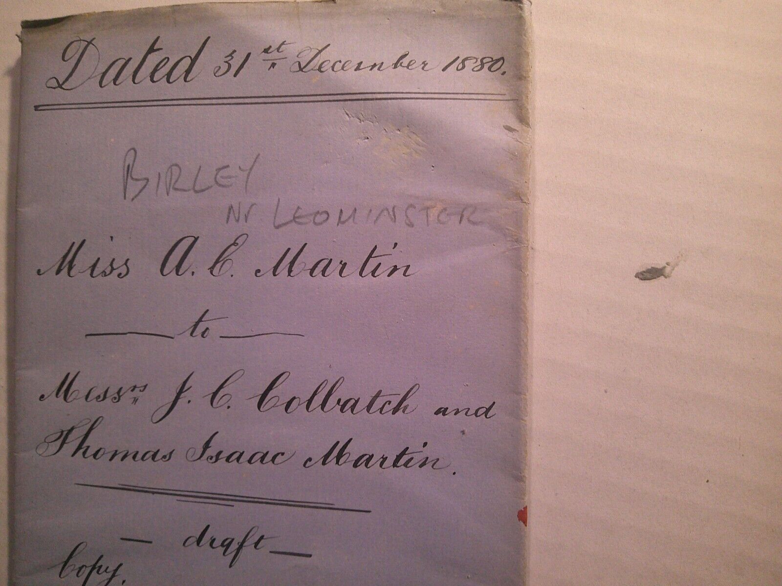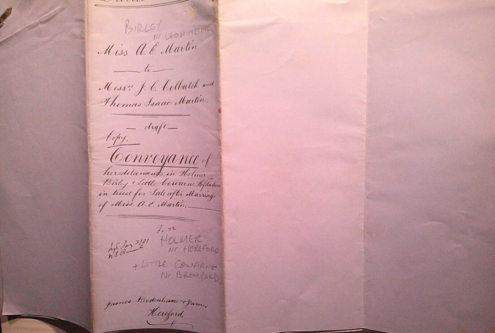 1880 Conveyance of Hereditaments Hereford, England. Miss A E Martin to Colbatch