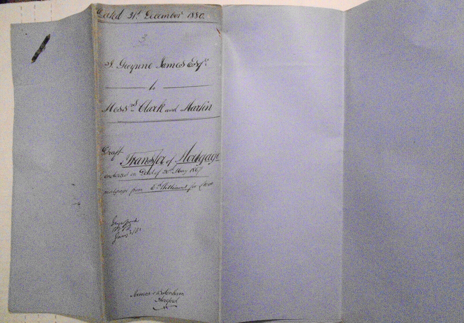1880 Indenture - Transfer of Mortgage. Hereford, England.