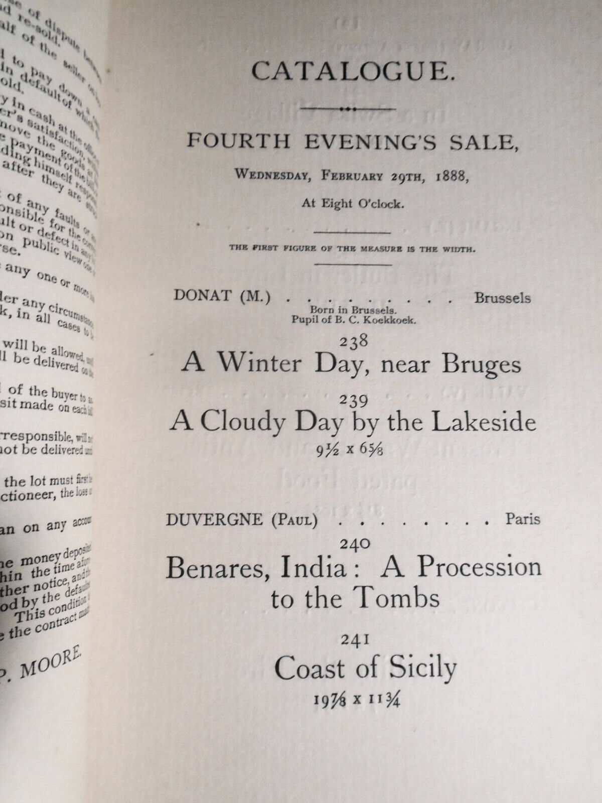 MOORE'S AUCTION GALLERIES, 1888. First Edition. Softcover; First Printing.