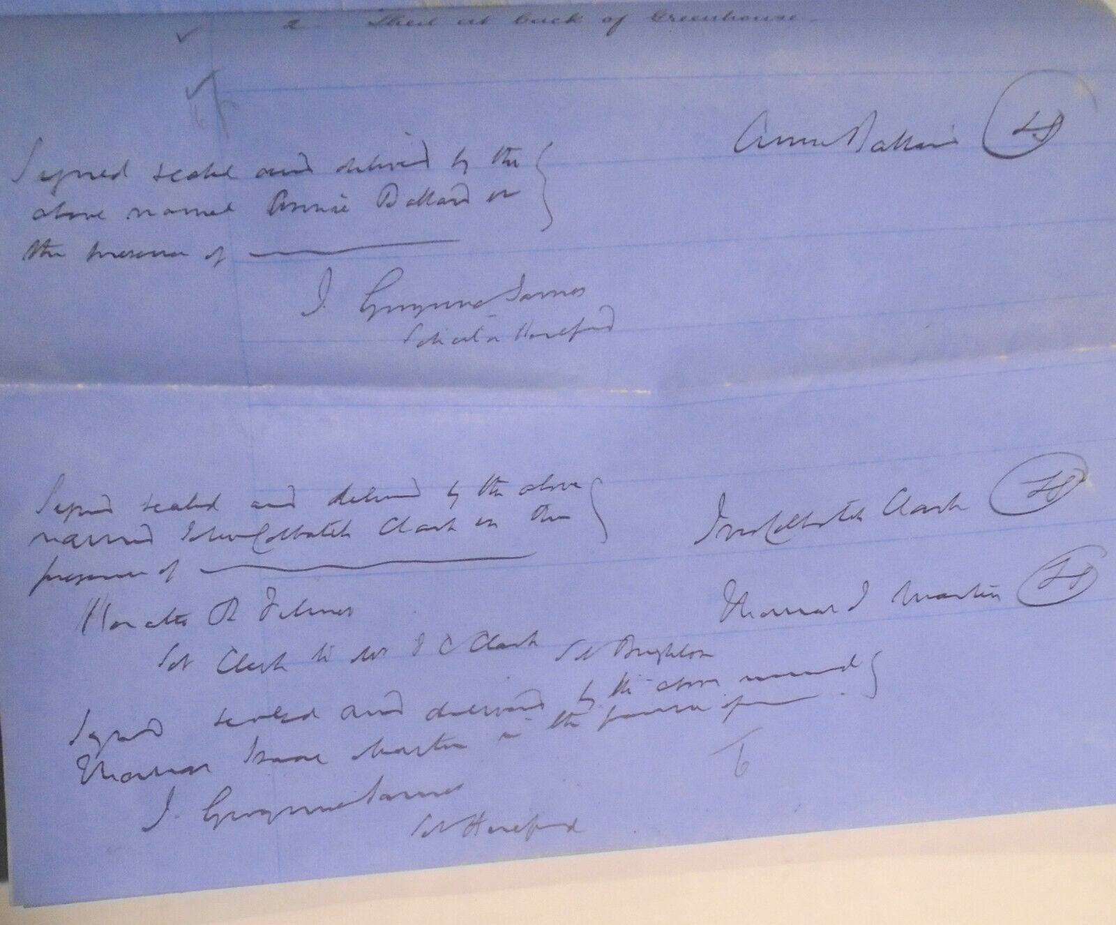 1889 Lease indenture. Hereford, England. Clark and Martin to Mrs. Annie Ballard.