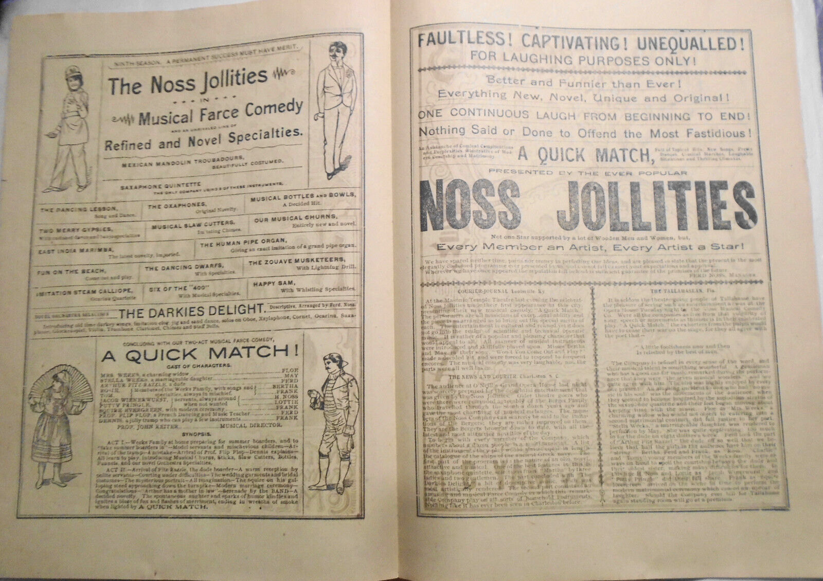 1893 Noss Family in Musical Comedy program - Elyria Opera House, Ohio