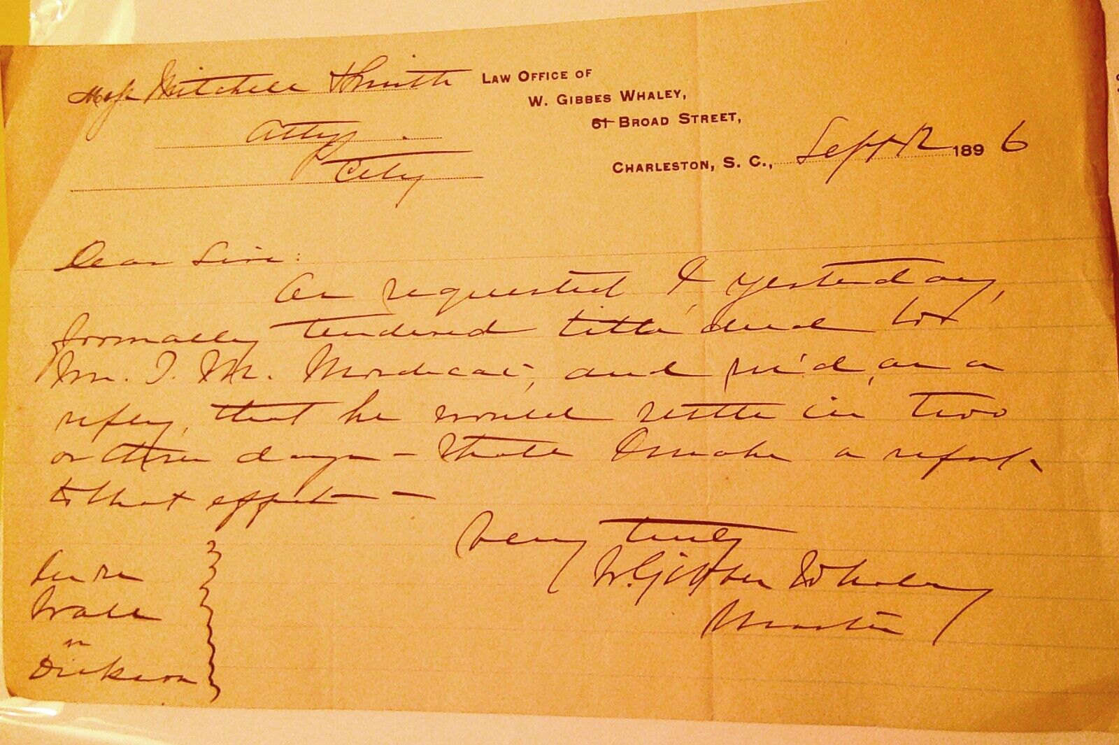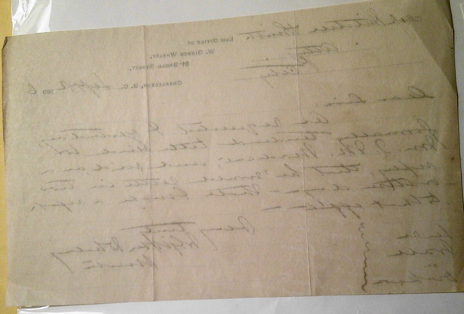 1896 Law Offices of W. Gibbes Whaley - Letter on Note paper