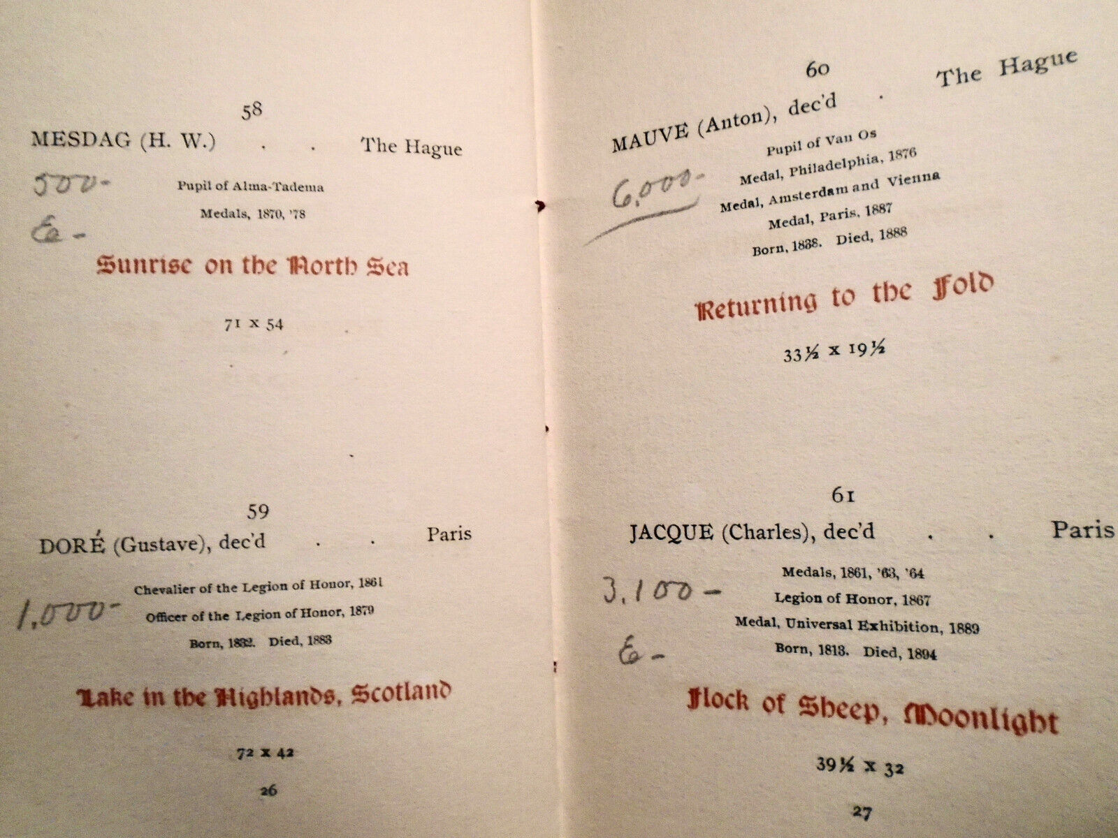 1897 Catalogue Of Modern Paintings.. Estate Of Mrs F G Crosby. 5th Ave Galleries