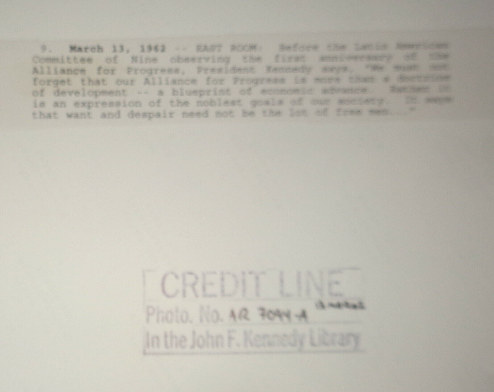 1962 President John Kennedy original photo, Latin American Alliance for Progress