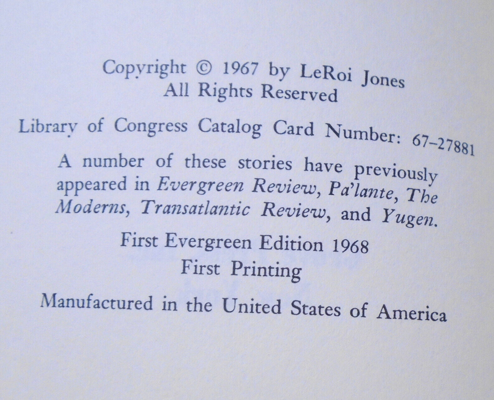 Tales by Leroi Jones (Amiri Baraka) is a First Printing.