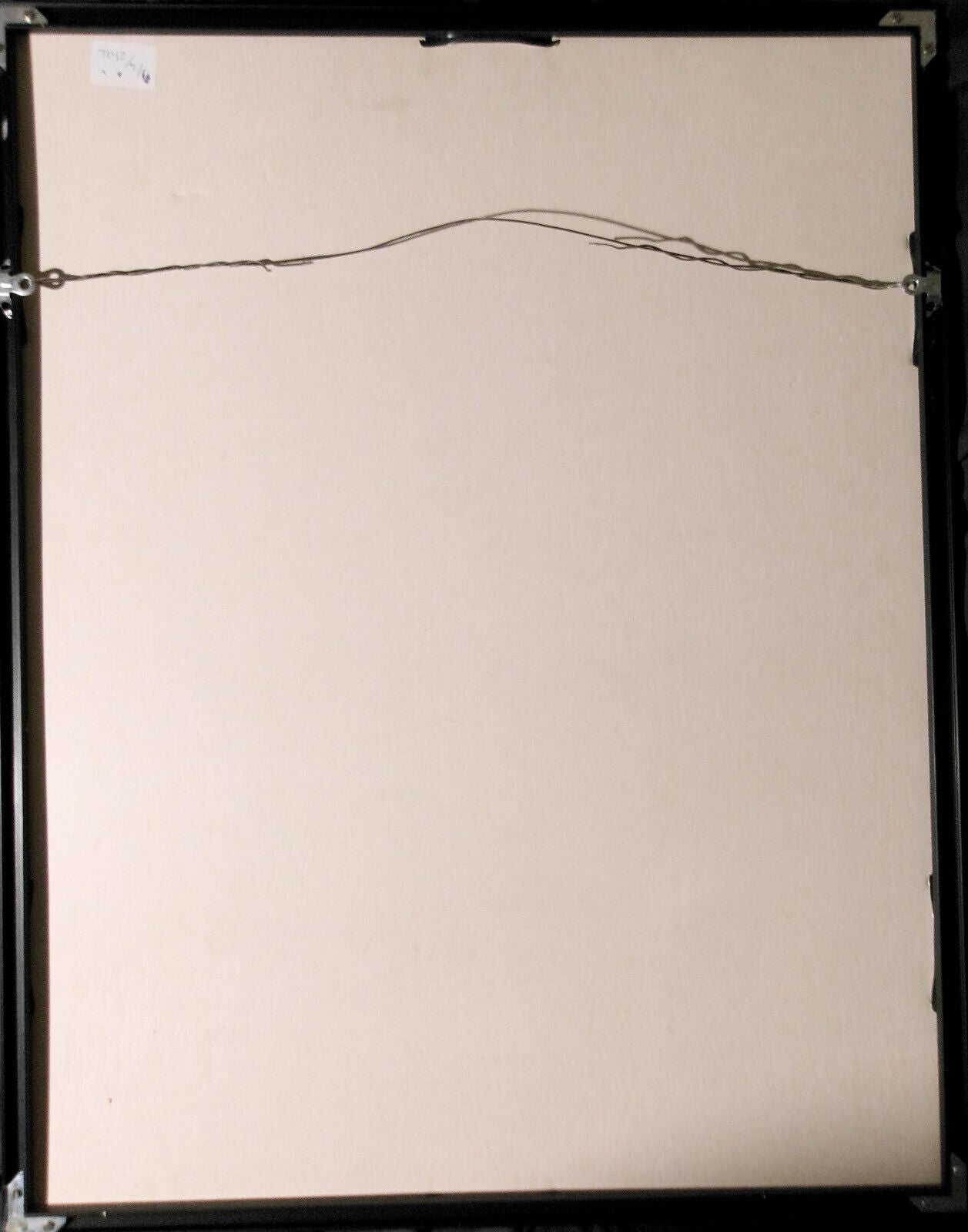 Size: 28 X 22 X 3/4 inches. In glass/metal frame. Ready to be hung.