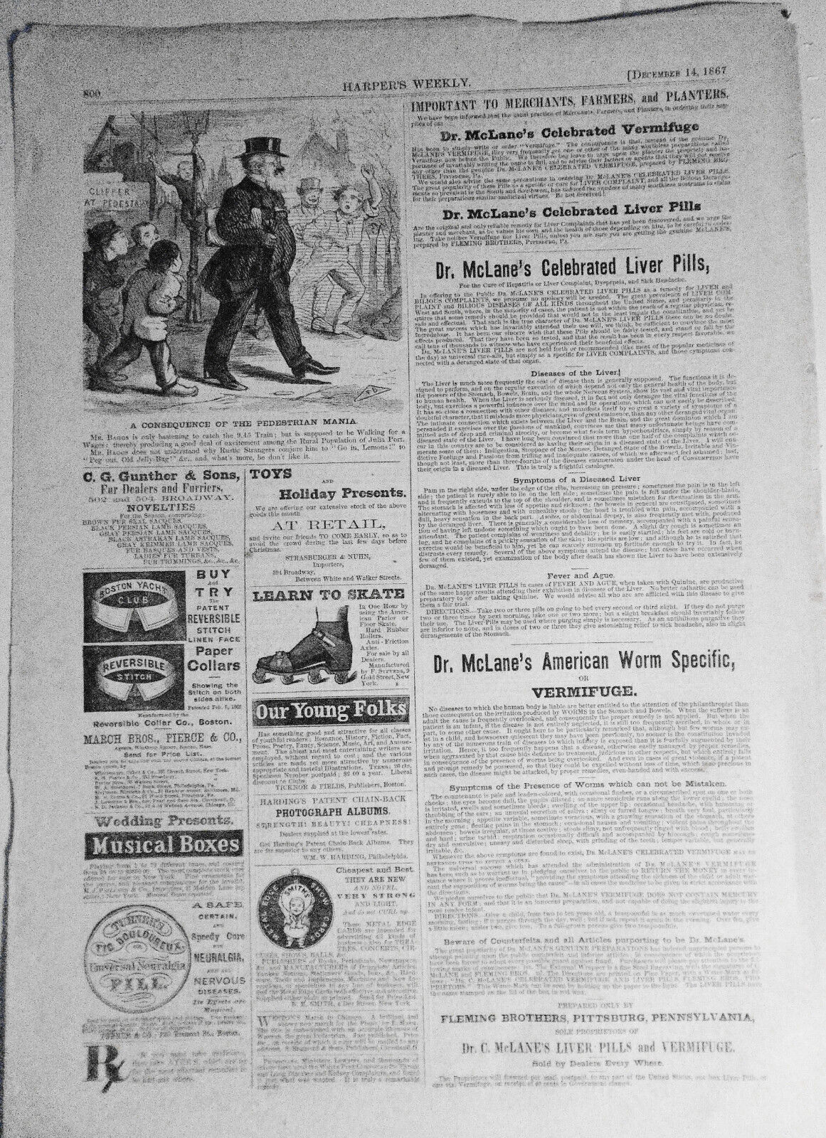 A Consequence Of The Pedestrian Mania - Harper's Weekly Original Cartoon 1867