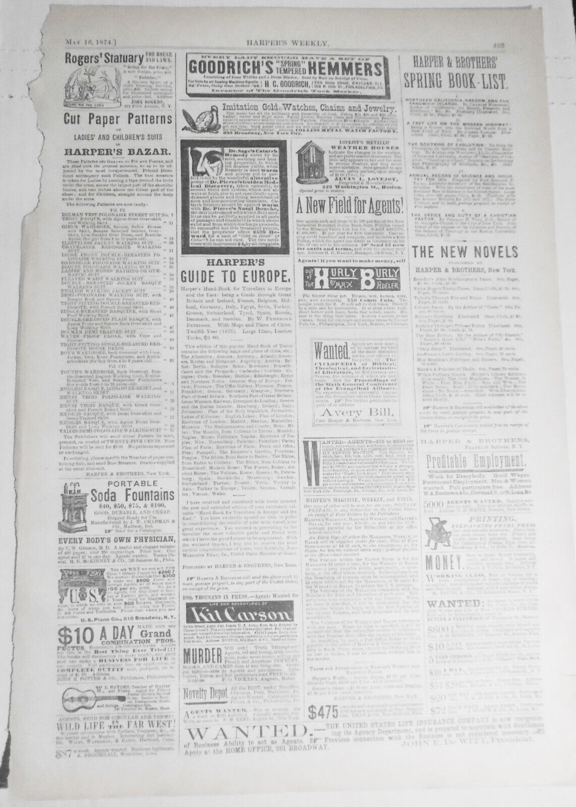 "A Plague O Both Your Houses " - original single page with cartoon from Harper's Weekly, May 16, 1874.