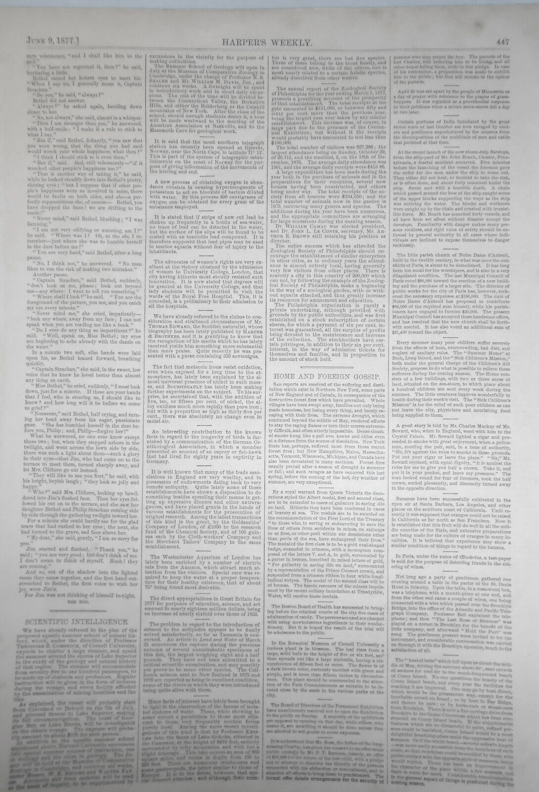 Original page from Harper's Weekly, June 9, 1877 -- with "Cossacks" story and print " A Russian Outpost of the Advanced Guard in Roumania".