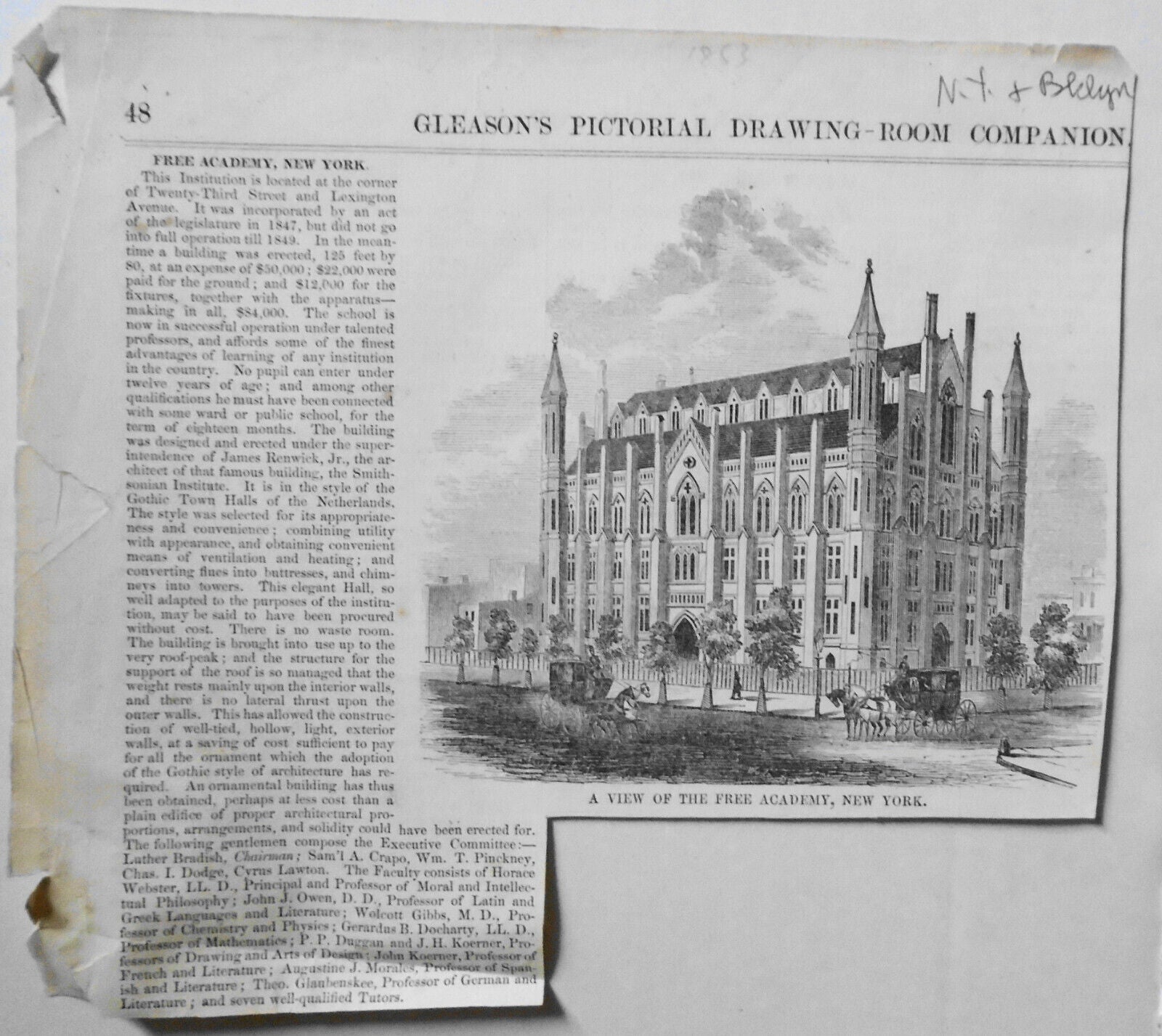 A View Of The Free Academy, New York - Gleason's Pictorial, 1853