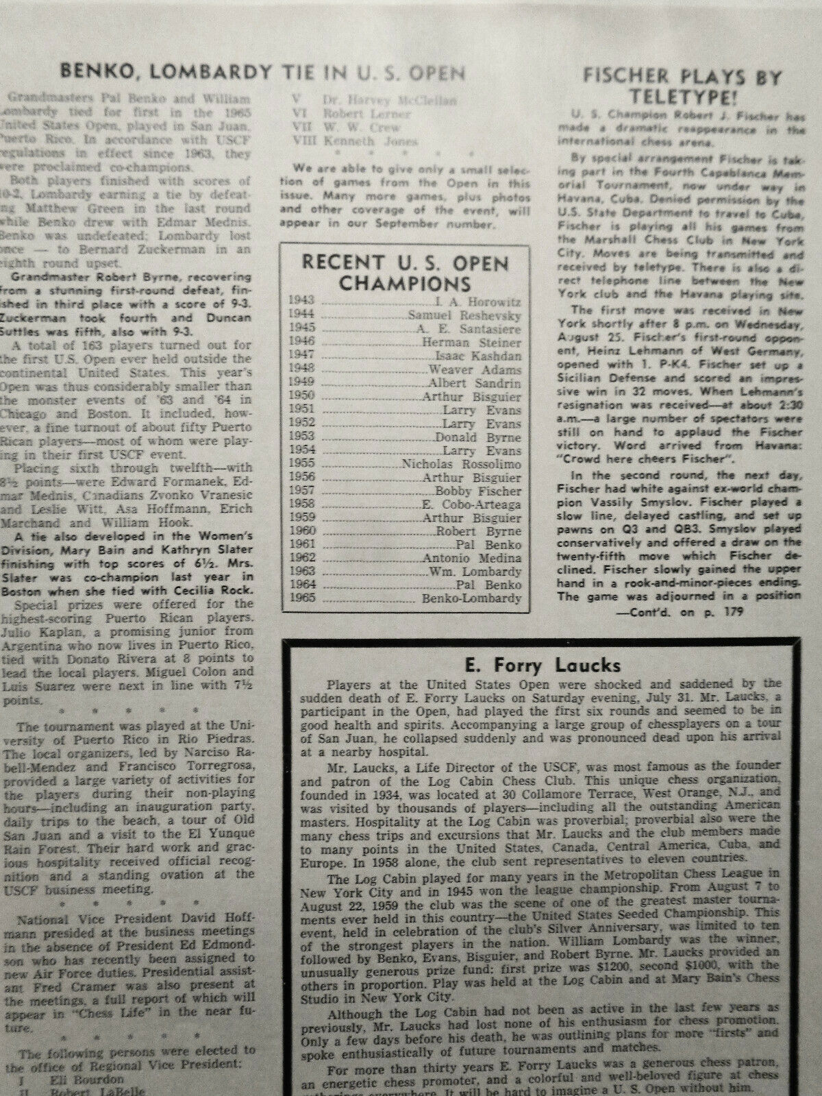 Chess Life, August 1965 - San Juan 1965 - Fischer annotated games