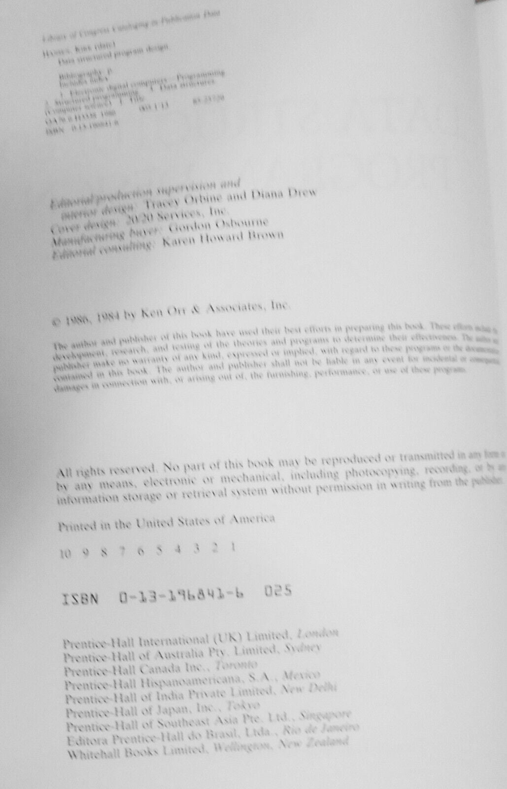 Data structured program design, by Kirk Hansen. 1986 First edition. Hardcover.