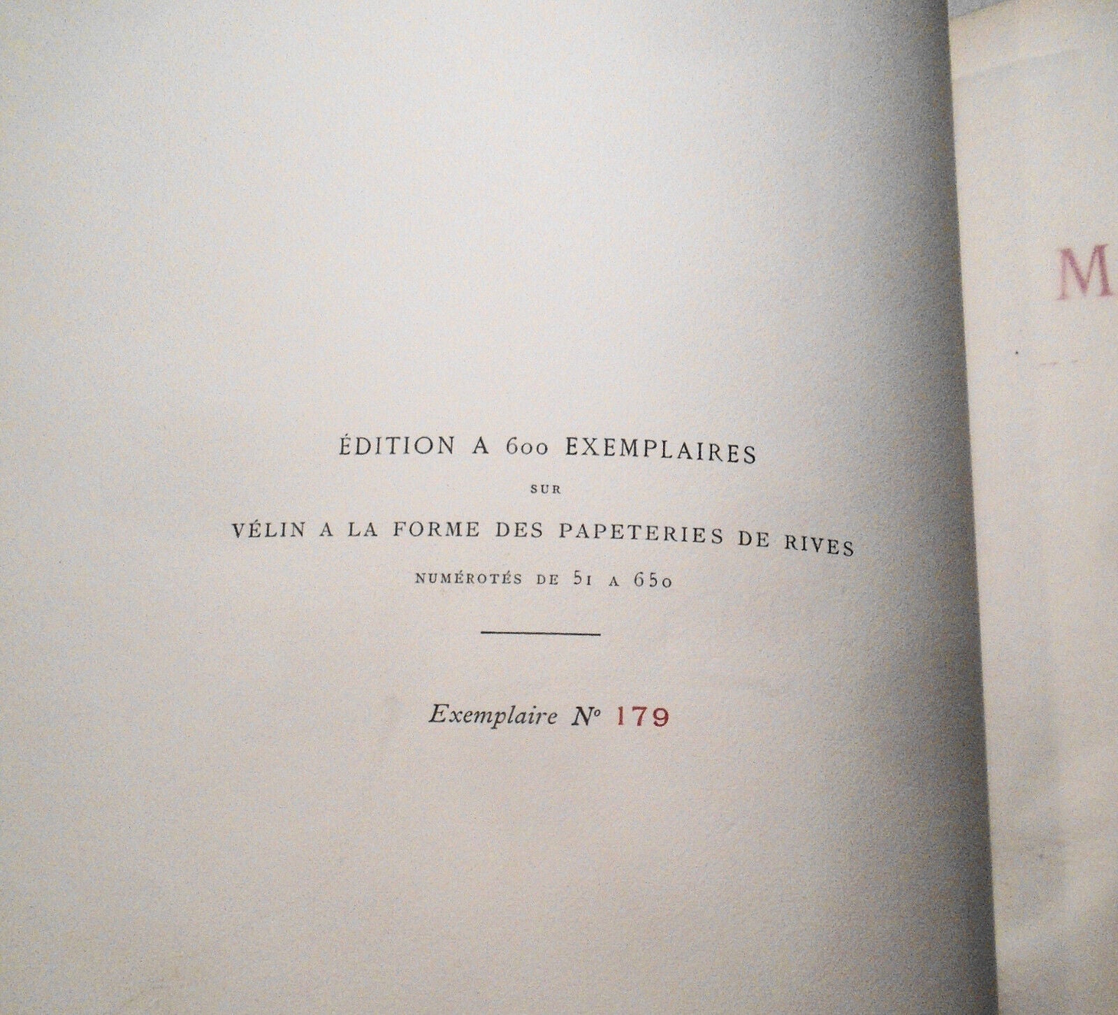 Edition A 600 Exemplaires sur Velin A La Forme des Papeteries de Rives. Numerotes de 5I A 650. Exemplaire No 179