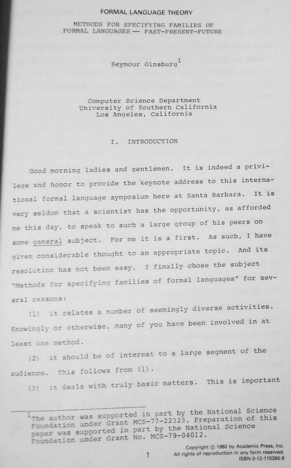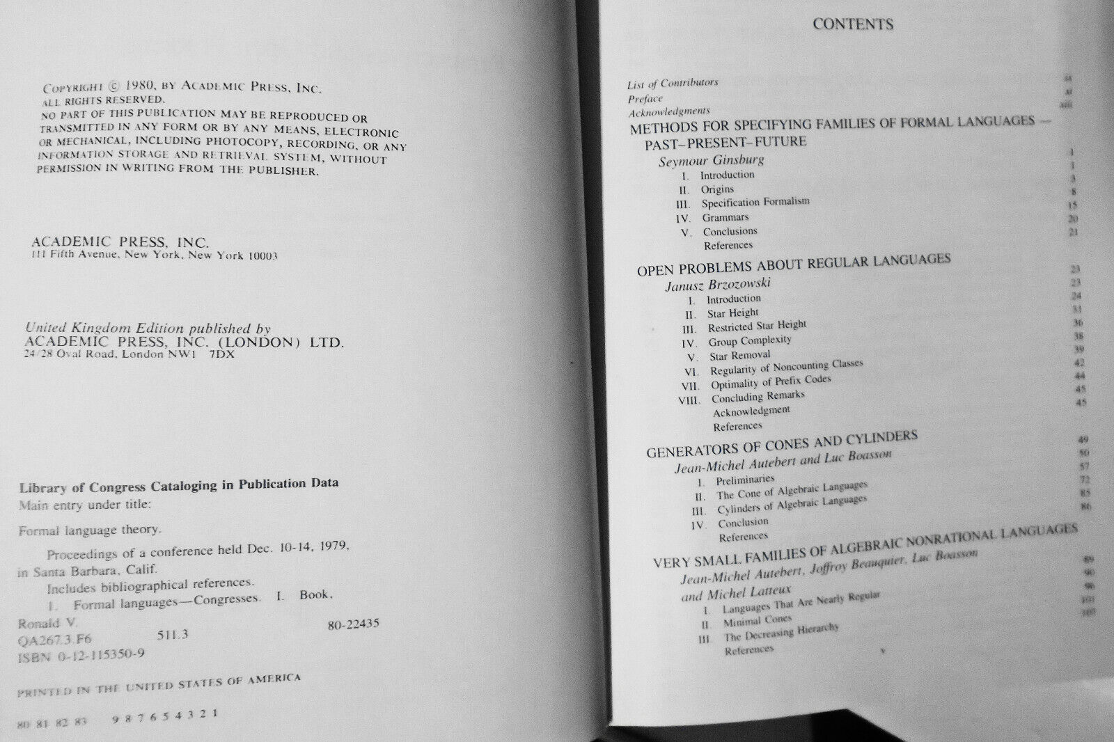 Formal Language Theory : Perspectives and Open Problems. By Ronald Book. 1980 HC