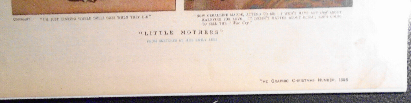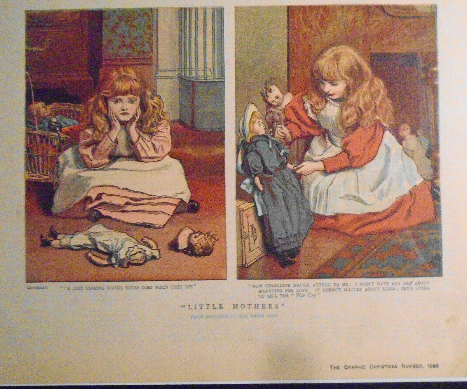 Little Mothers (with dolls) - sketches by Emily Lees. The Graphic Christmas Number 1888. Original print.