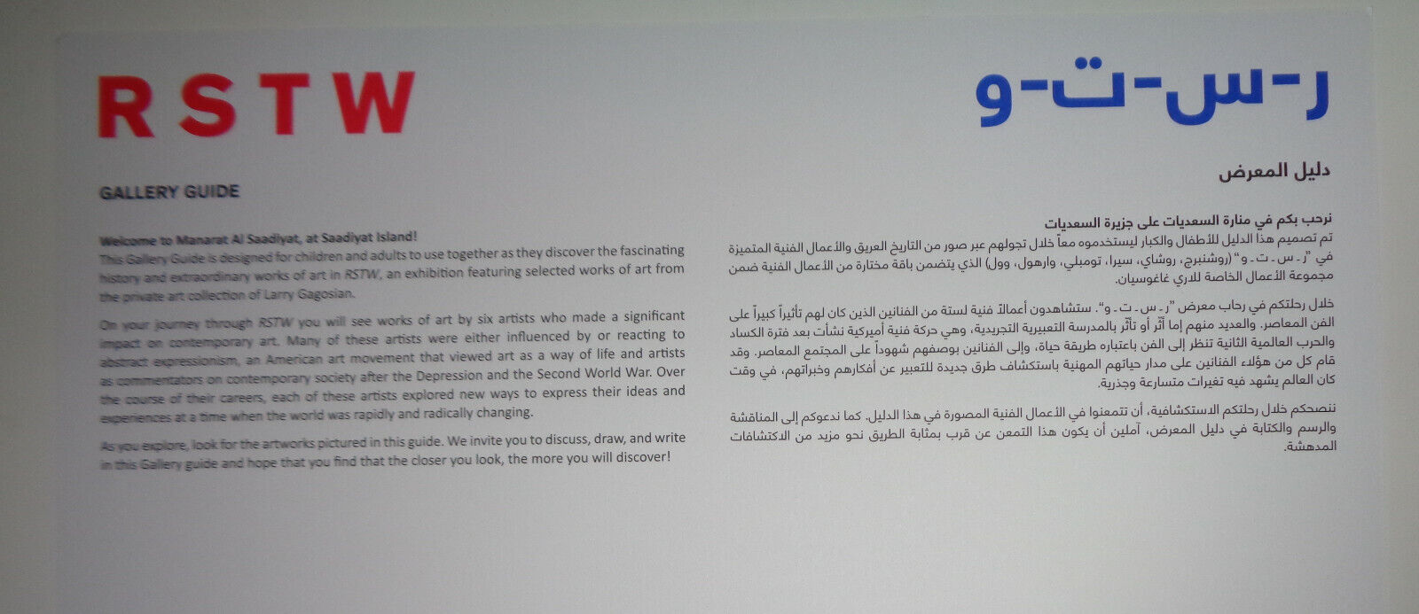 RSTW Gallery Guide collection Larry Gagosian /Warhol Rauschenberg Abu Dhabi 2010
