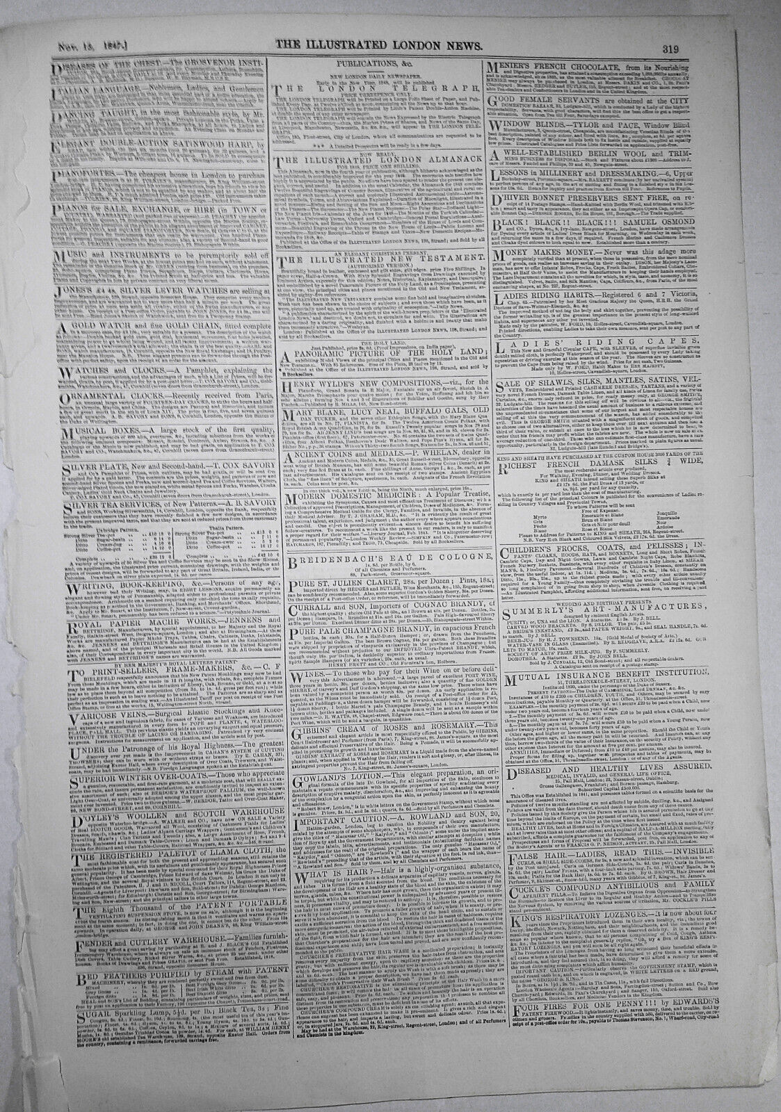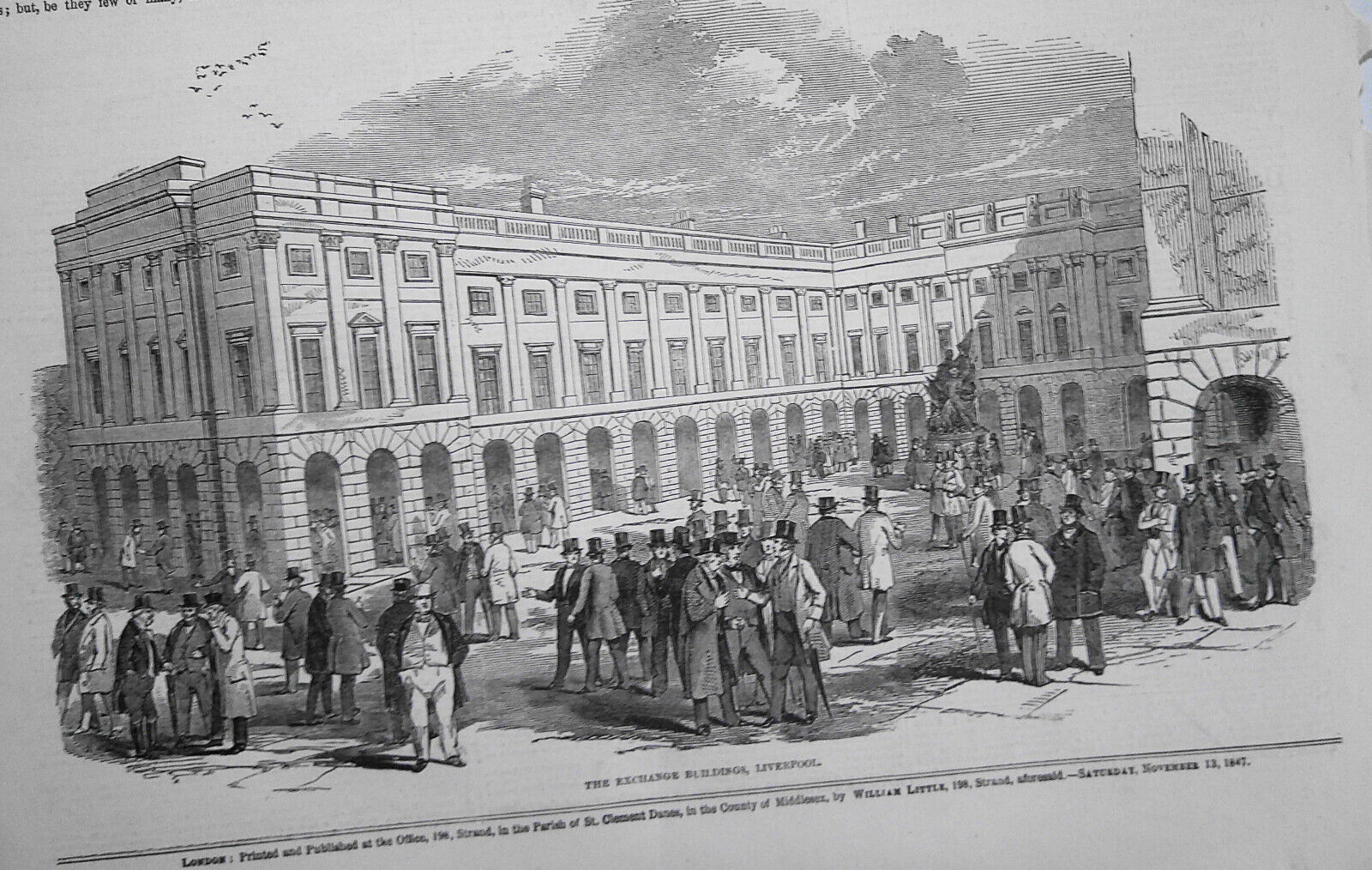 THE ILLUSTRATED LONDON NEWS - ORIGINAL SINGLE PAGE - November 13, 1847 - 2 Stories and prints 1. The Kaffir War. 2. The Exchange Buildings in Liverpool.