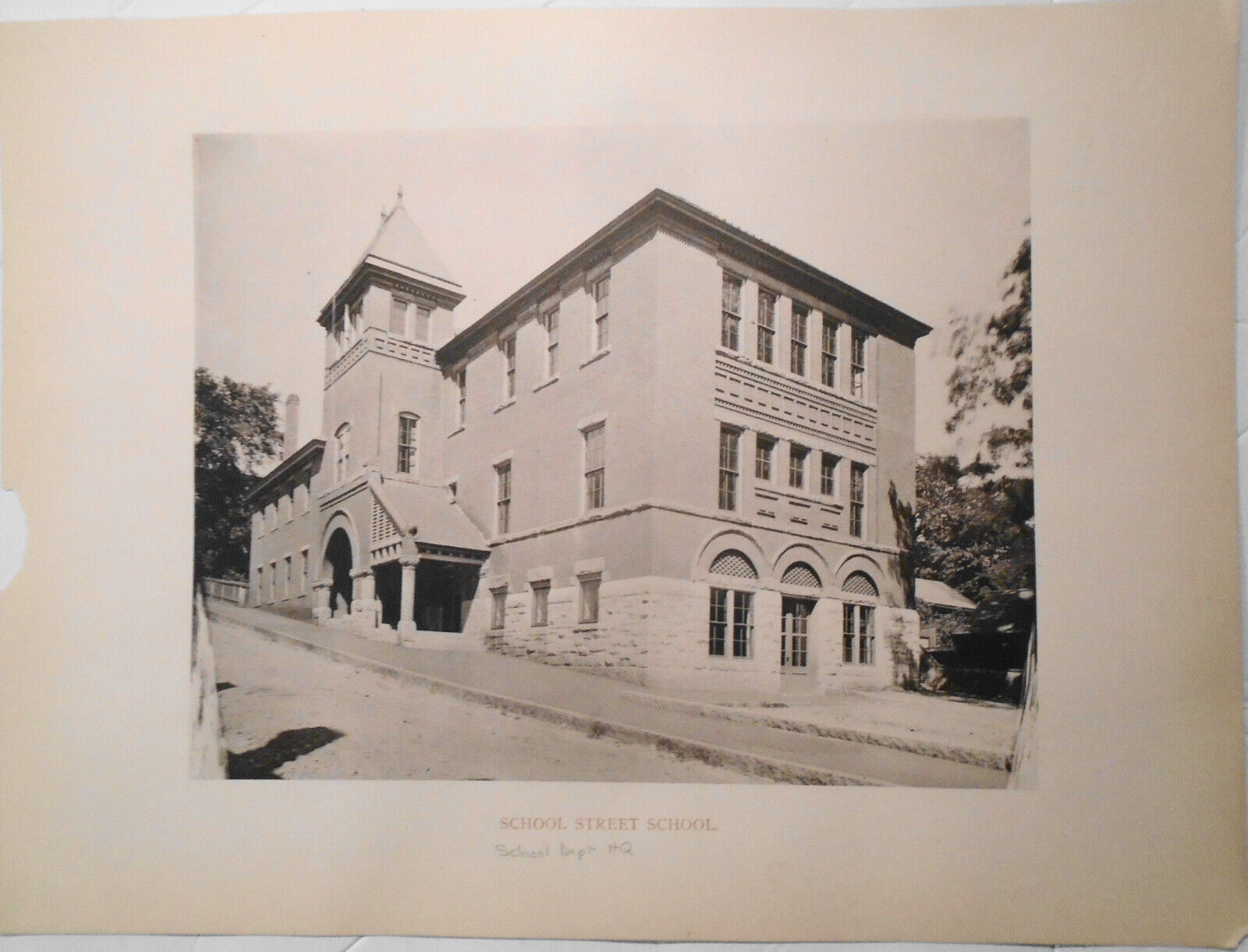 School Street School, Fitchburg MA - antique print early 1900s - 13.75" x 10.25"