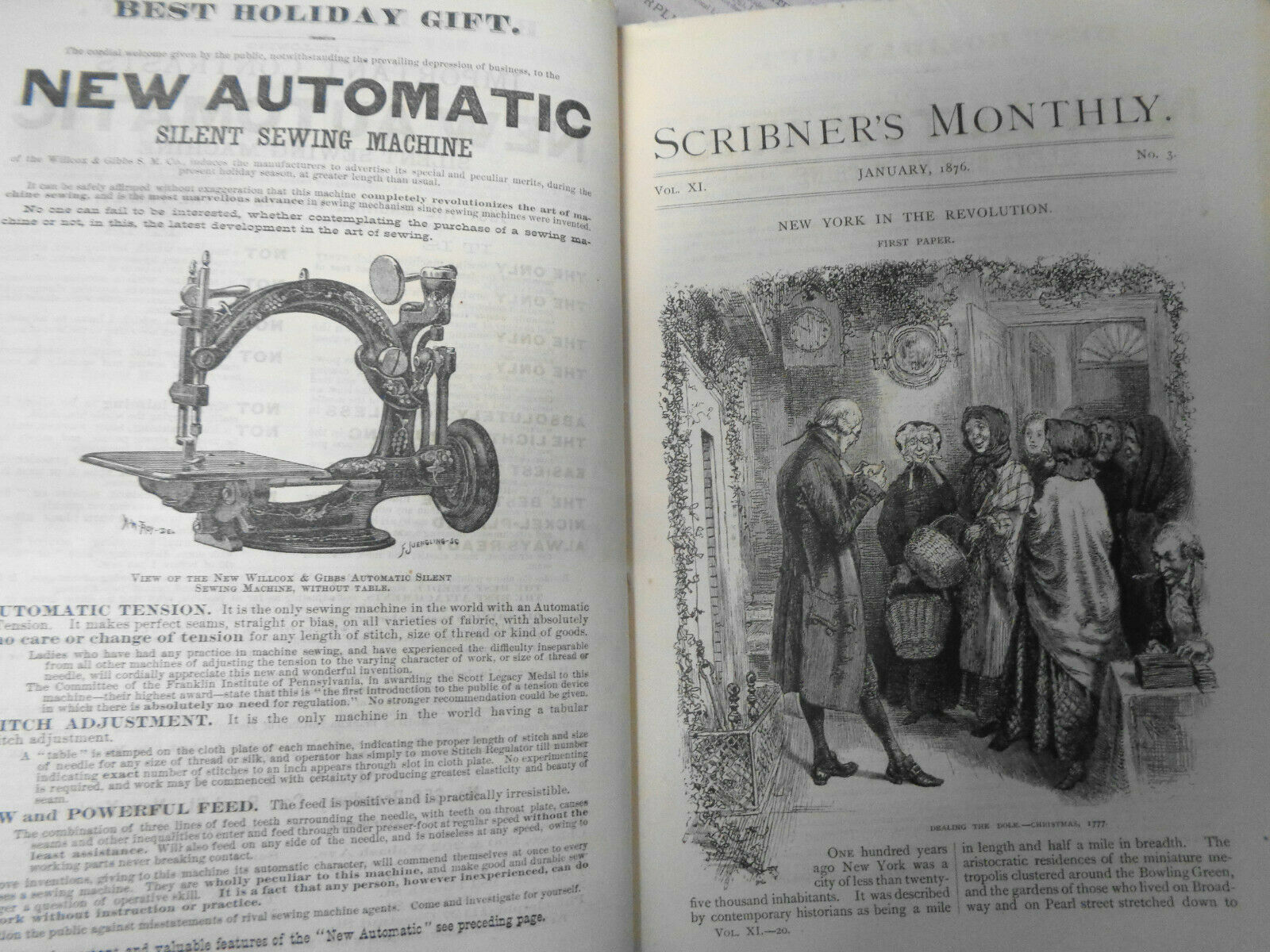 Lot of two issues of Scribner's Magazine 1876 January & February - New York in the Revolution, Bret Harte, Edward Everett Hale, etc