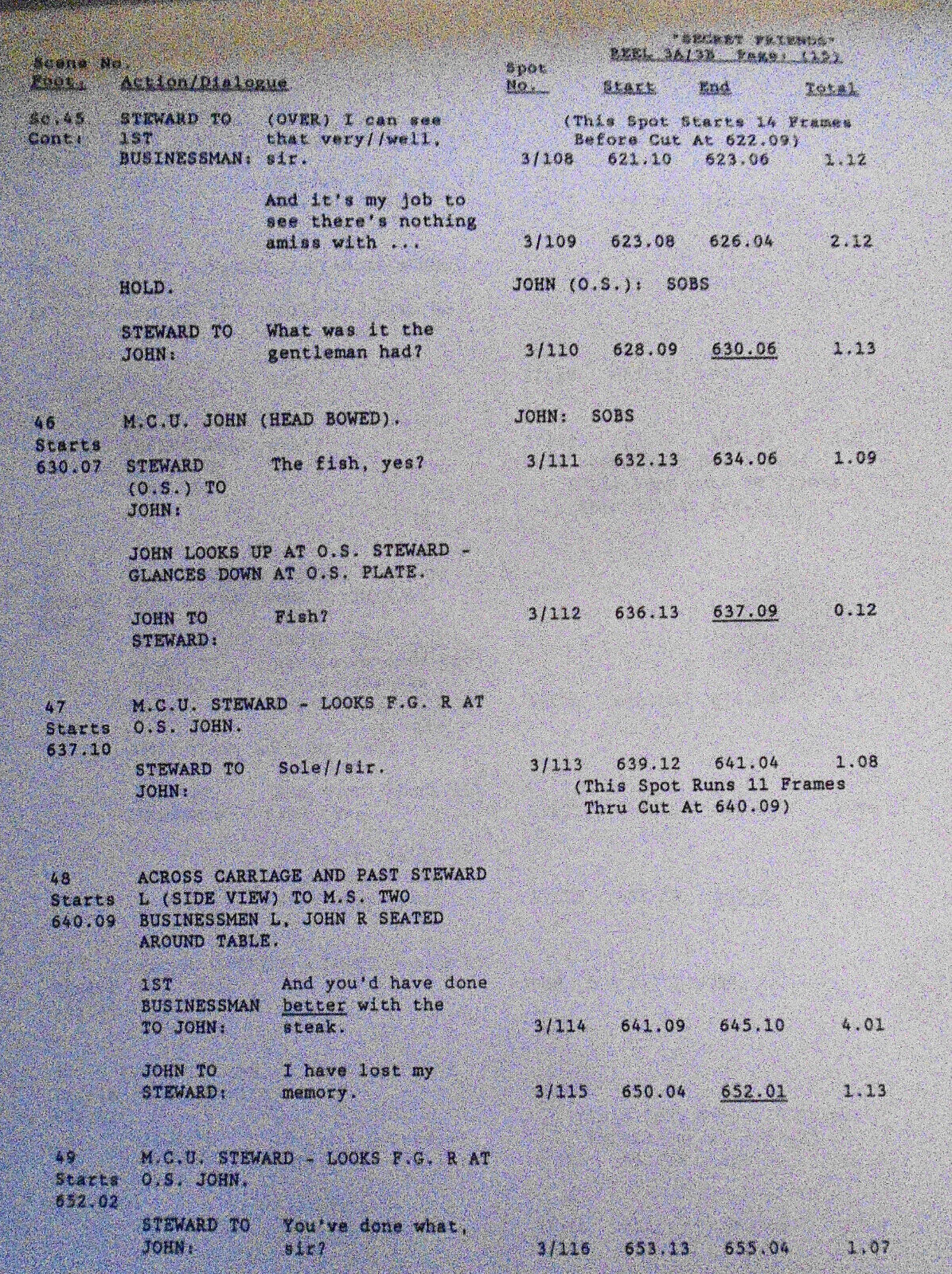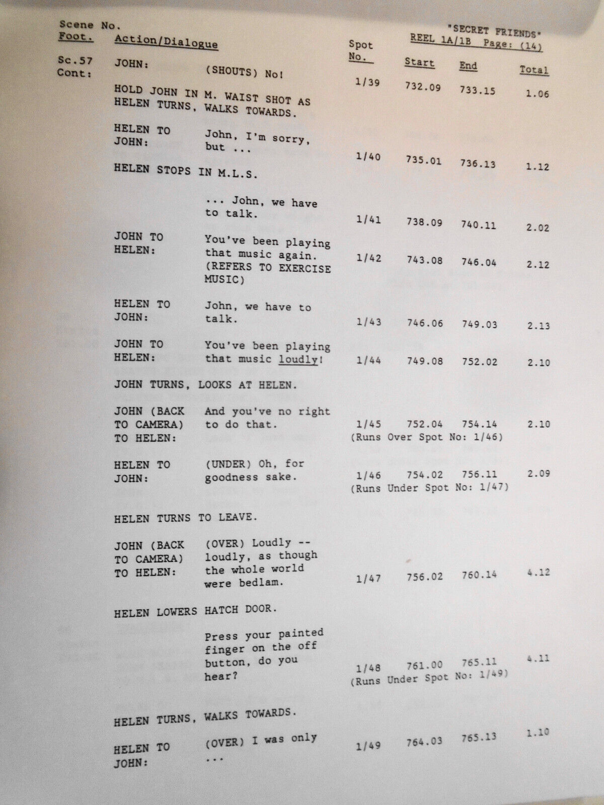 Secret friends - Combined Dialogue and Continuity Post-Production Release Script. 1991.