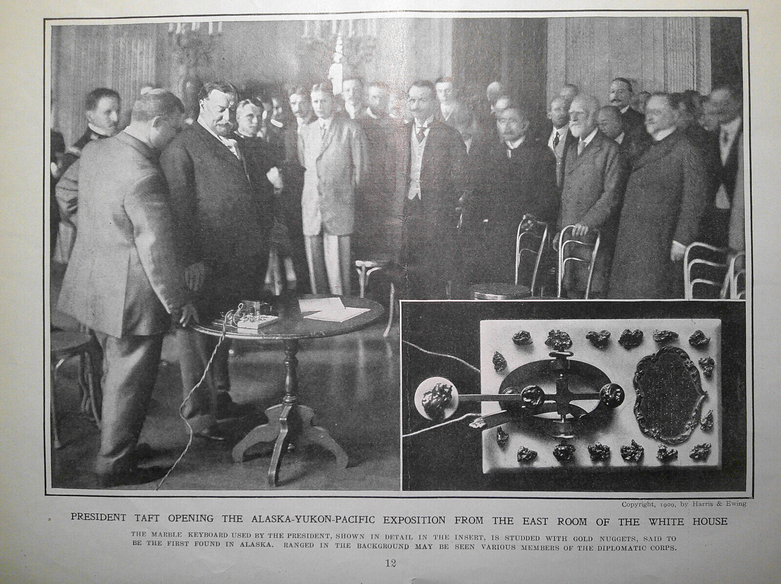 Original full page from Harper's Weekly, 1900, with further text and photos on verso. Includes a map.