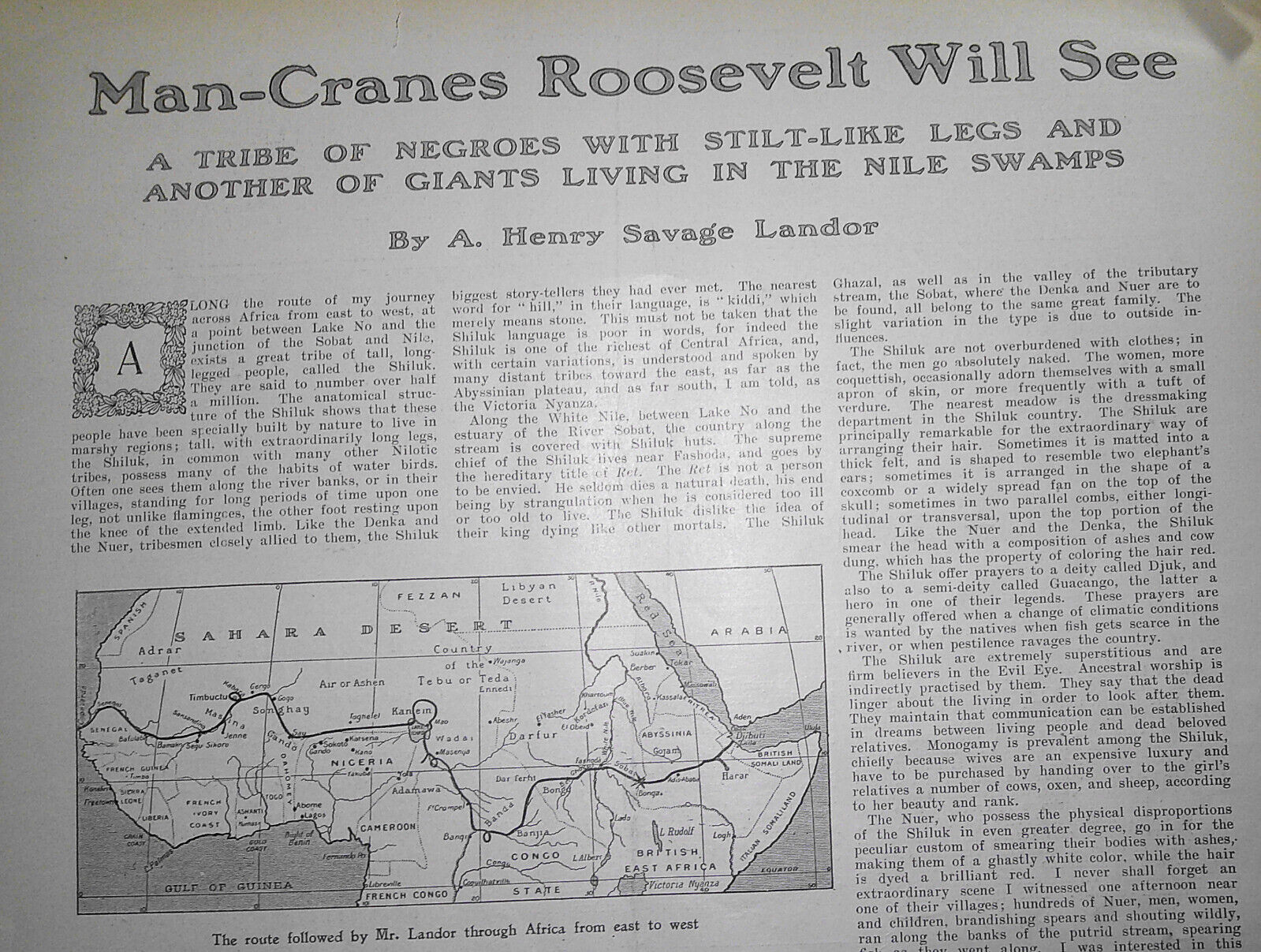 Man-Cranes Roosevelt will see - A Tribe of Negroes with Stilt-like Legs and Another of Giants Living in the Nile. By Walter Savage Landor.